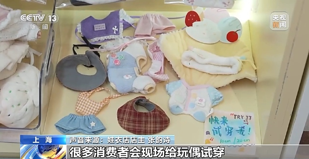 娃衣店店主 张韵诗:很多顾客的建议,加入了娃衣的售卖,很多消费者会现场给玩偶试穿,还会和我们交流设计想法。娃衣从今年以来,销售量应该增长了30%左右。