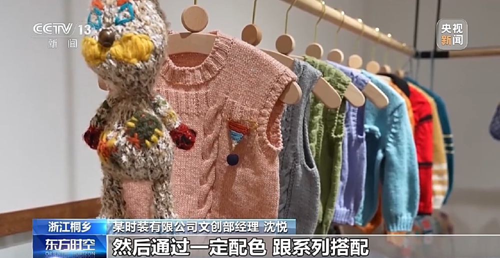 某时装有限公司文创部经理 沈悦:比如大人身上穿的衣服,我们可以把它缩小化,通过一定配色,跟系列搭配,可以让它成为亲子系列。