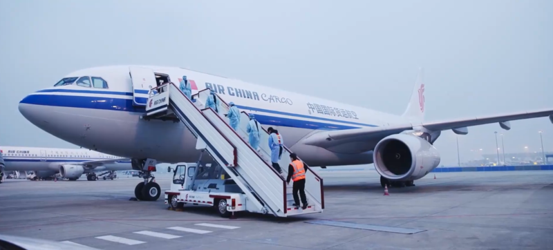 2023年7月25日,在法国巴黎戴高乐机场,法国总统夫人布丽吉特·马克龙为大熊猫“圆梦”送行。新华社记者 高静 摄