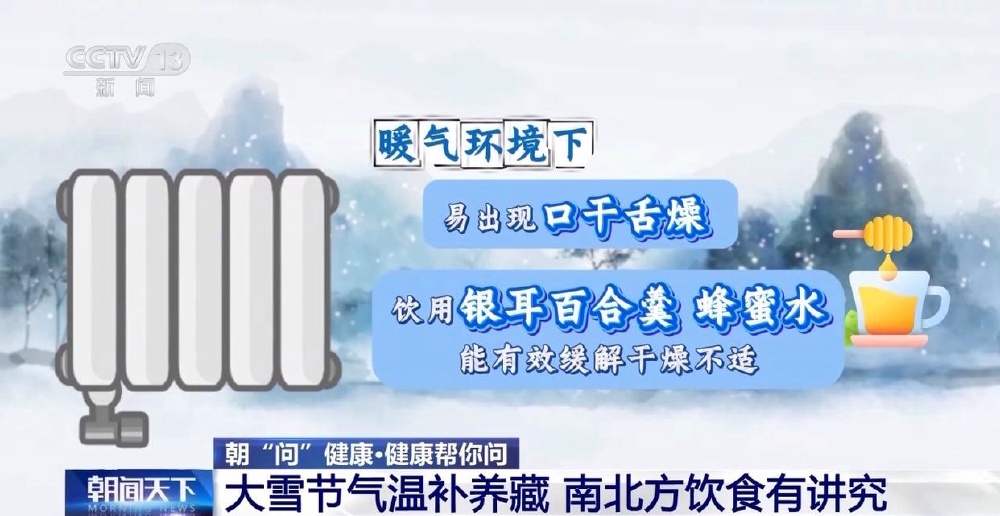 今天迎来大雪节气,这段时期气温骤降,北方多雪、南方多湿冷,气候差别加大。无论身处南方还是北方,大雪节气养生的核心都是“顺应冬天的闭藏规律”,避免寒邪入侵。