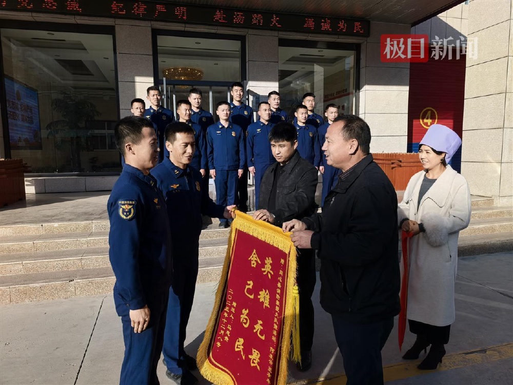 ▲被救男童家长送锦旗感谢消防队(受访者供图)