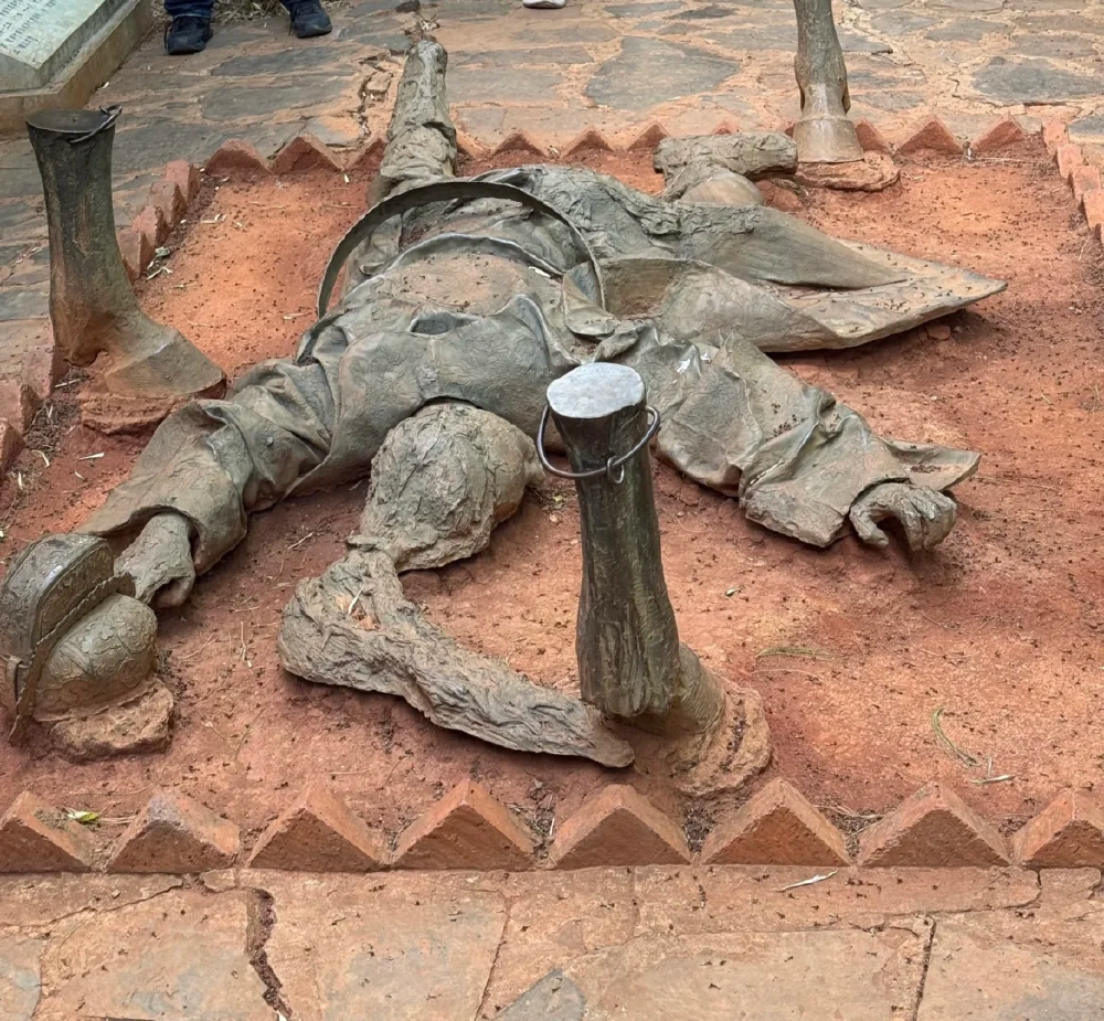 ▲昆明莲花池公园内原永历帝“趴泥”雕塑。网友“山猫”图