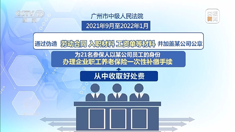 在高额非法收益的诱惑下,骗子公司可谓用尽了心机。如果他们真帮不符合条件的人员成功补办了社保,结果会怎么样呢?不久前,广州市中级人民法院披露了这样一起案例,2021年9月至2022年1月,广州市某公司法定代表人李某某通过伪造劳动合同、入职材料、工资单等材料并加盖某公司公章,为21名参保人以某公司员工的身份办理企业职工养老保险一次性补缴手续,从中收取好处费,有8人领取了企业职工养老保险待遇,造成社保基金损失13.86万元。2024年7月,李某某犯诈骗罪,被判处有期徒刑三年,21名参保人违规补缴时段的缴费记录已作清退处理。