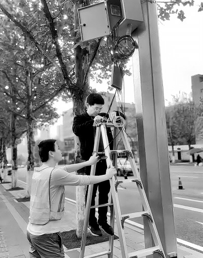 ▲团队成员在调试智能信号设备。资料图片