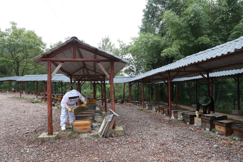 葡萄采摘园发展步入正轨后,冉光华又将目光瞄向了村里丰富的花蜜资源:“村集体经济公司打造了中蜂成熟蜜示范基地,同时组织村民学习中蜂养殖技术,对村民的中蜂养殖实行统一管理、产品统一销售。”
