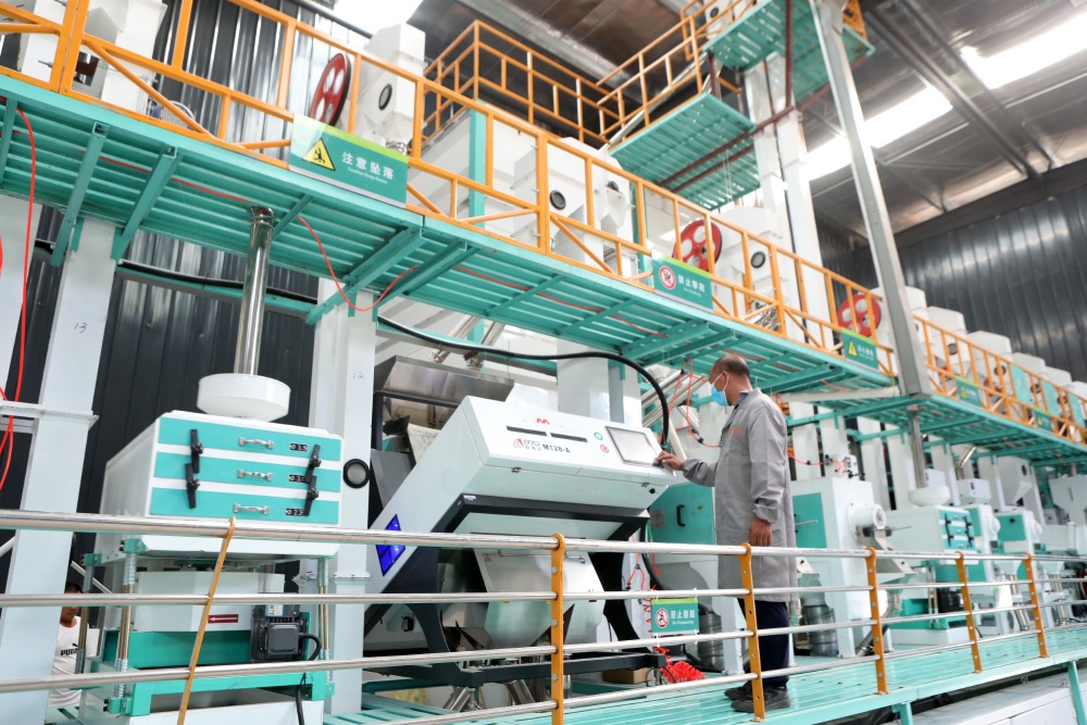 ▲10月16日,永泸强村公司里,工作人员正在查看工作中的大米加工设备。通讯员 陈仕川 摄视觉重庆