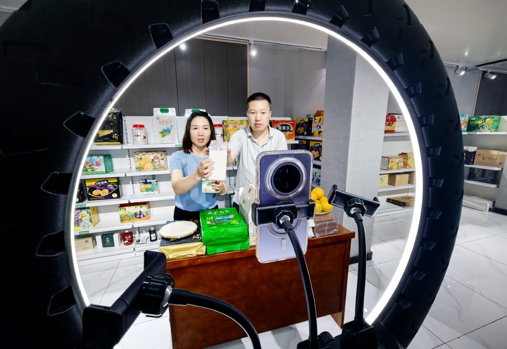 ▲10月16日,永泸强村公司里,工作人员通过直播带货的方式销售公司加工生产的“永泸甄米”。 通讯员 陈仕川 摄/视觉重庆