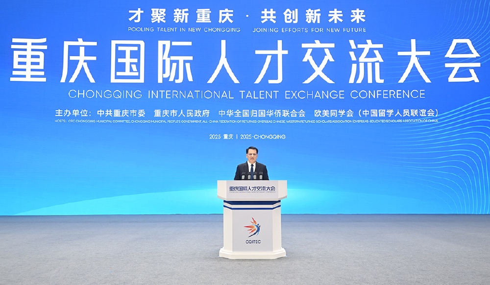 袁家军代表市委、市政府向来渝出席大会的中外嘉宾表示热烈欢迎,感谢大家长期以来对重庆发展的关心支持。袁家军说,近年来,重庆深入实施科技创新和人才强市首位战略,着力构建现代化产业体系,打造高能级创新平台,拓展高水平AI应用综合场景,营造高质量创新生态,完善高效能人才服务体系,加快建设高品质宜居城市,为各类人才在渝发展提供了广阔舞台、创造了优质条件。新征程上,重庆将全面学习全面贯彻中共二十届四中全会精神,深学笃行习近平主席关于做好新时代人才工作的重要思想,把人才工作摆在现代化新重庆建设的突出位置,坚持真心爱才、悉心育才、倾心引才、精心用才,持续优化人才全谱系引育机制,全力构筑高能级人才赋能平台矩阵,优化完善人才创新创业全周期服务体系,迭代升级“渝才荟”综合服务场景,更好让人才资源高效配置、创新活力充分迸发,加快建设西部人才中心和创新高地。重庆诚挚邀请广大人才走进重庆、扎根重庆,共享机遇、共创未来,奋力谱写中国式现代化重庆篇章。