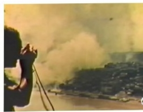 19日正午,暑气蒸腾,斯科特强压着心底的震惊和恐惧,冒着生命危险,在美国大使馆海军武官处,用镜头定格下“八一九大轰炸”的惨烈实况。