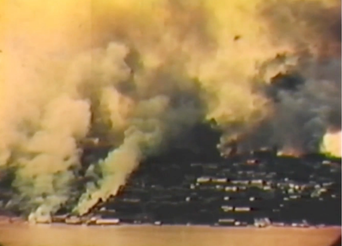 ▲轰炸之后,被浓烟吞噬的渝中半岛。