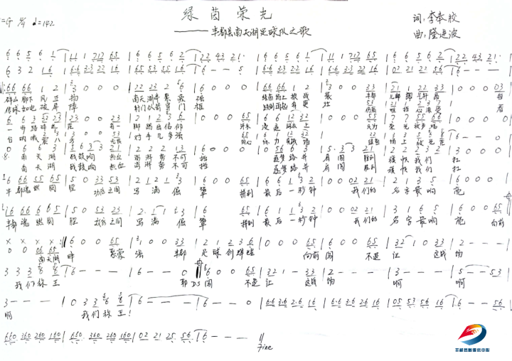 ▲丰都南天湖队专属队歌《绿茵荣光》。图片来源:丰都融媒