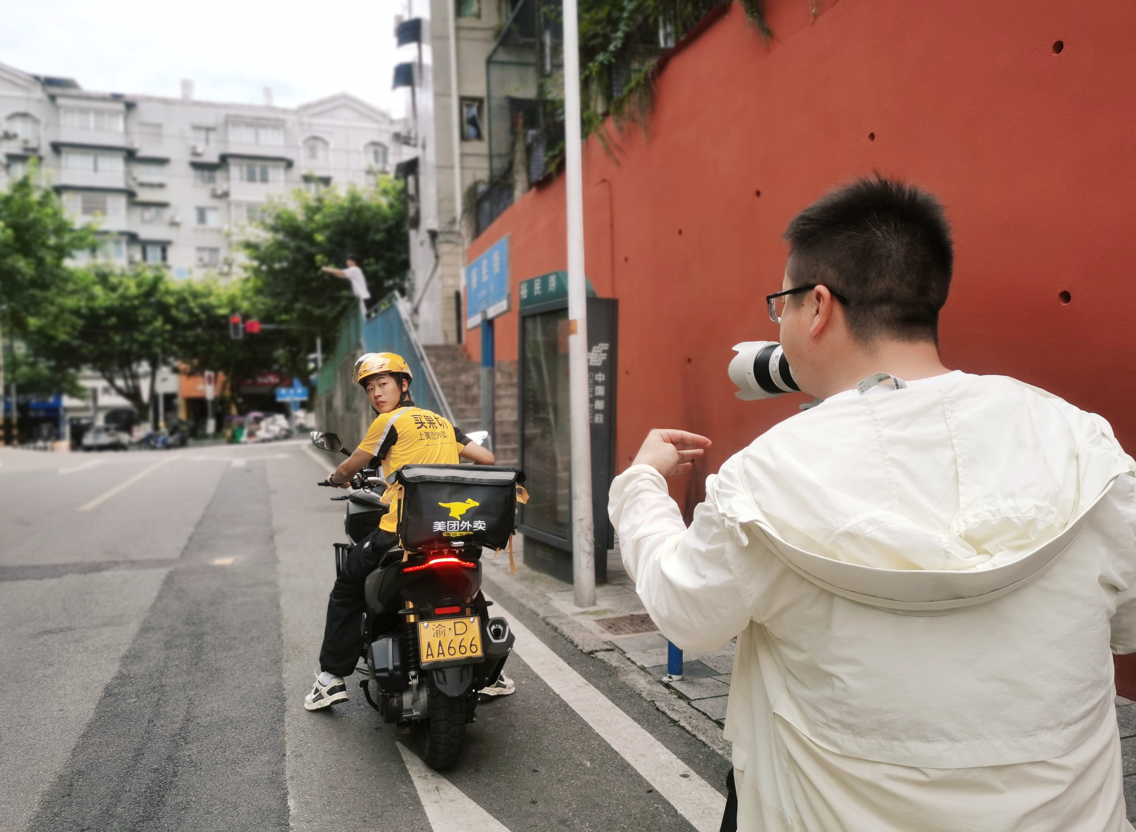 ▲梁平核桃湾,摄像师在拍摄外卖小哥片段。图片来源:梁平区融媒体中心