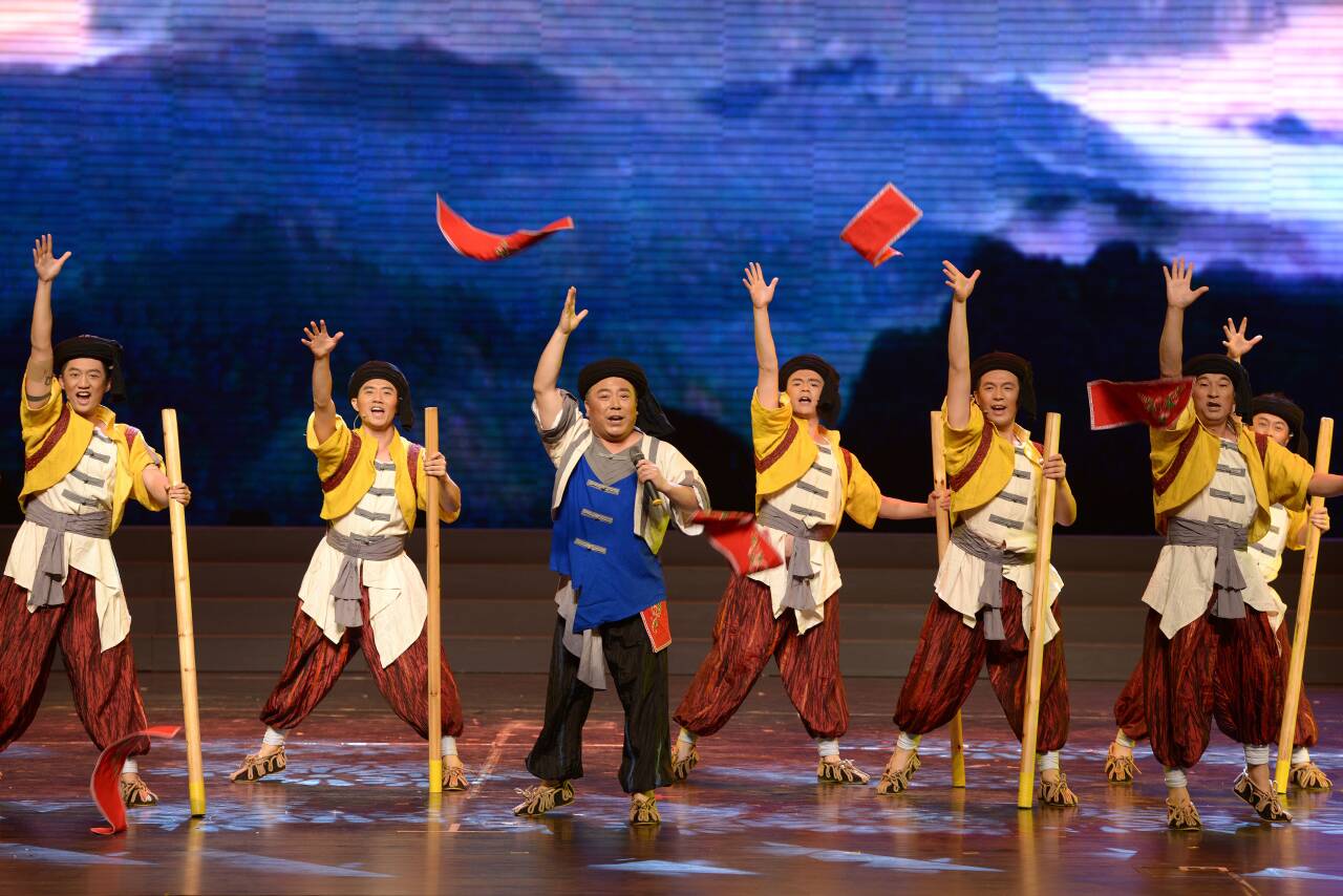 从男声表演唱《跳磴石工号子》将市级非遗代表性项目跳磴石工号子以艺术形态搬上舞台,并斩获第十六届群星奖开始,大渡口便开启了群星之路的辉煌征程。该作品取材于跳磴镇石工们劳作的原始号子,经过挖掘提炼,以表演唱的方式上演,让这一濒临消失的劳动技艺重焕生机。