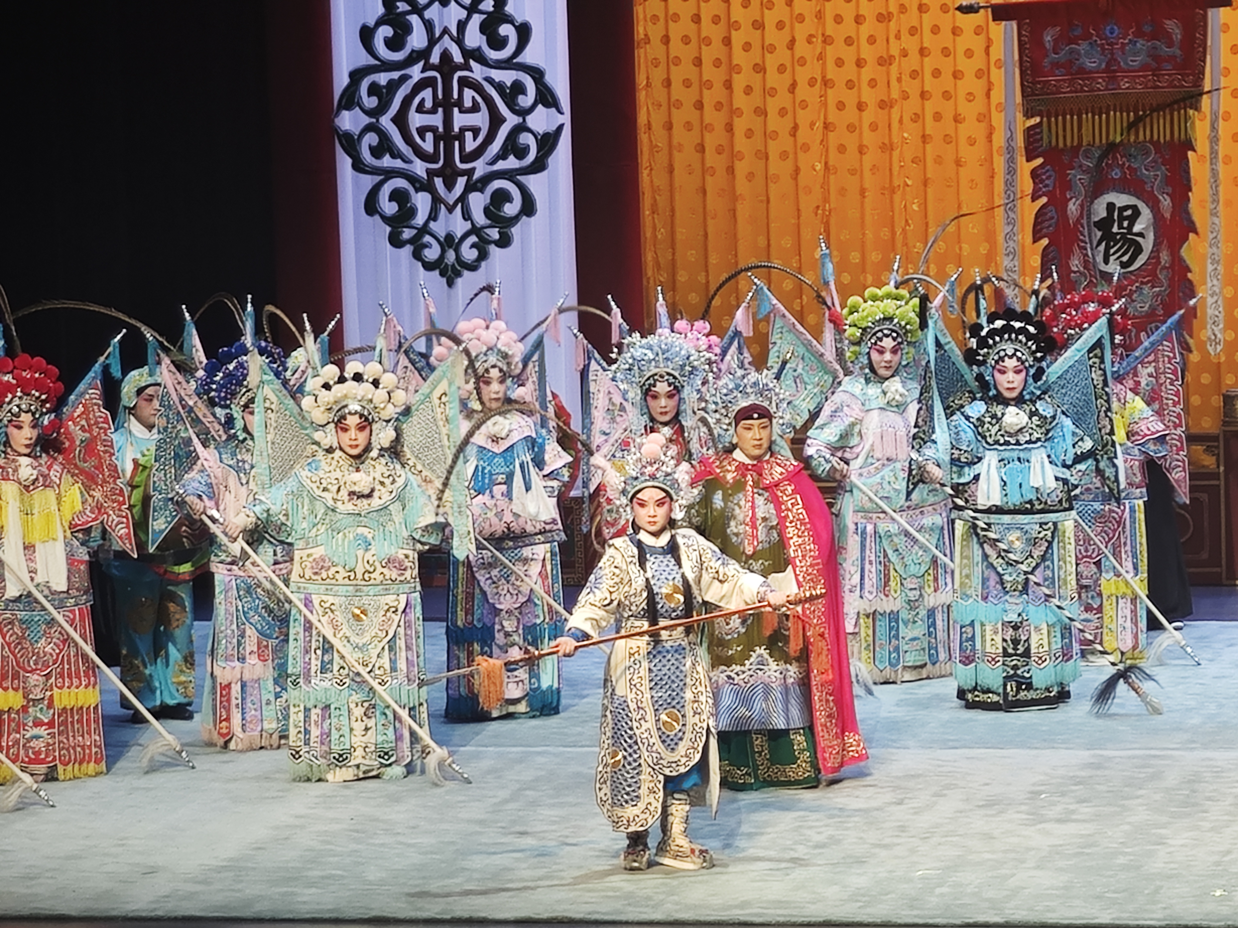 《杨门女将》这个题材首先占尽先机,它由人们耳熟能详的杨家将故事改编而来,讲述了杨宗保沙场重伤身亡,在天波府阖府悲恸之际,年迈的佘太君挂帅,率杨家众女将奔赴边关杀敌的壮举。这样的故事线与石家庄丝弦高亢激越、苍劲古朴的声腔相得益彰。舞台上,饰演佘太君的演员唱腔浑厚苍凉,一句“一句话恼得我火燃双鬓”尽显老英雄的悲愤与决绝;而“探谷”一折中,饰演穆桂英的演员则展现出丝弦唱腔中刚柔并济的特色,将巾帼英雄的智勇与坚韧刻画得入木三分。整场演出剧情紧凑,从“寿堂惊变”的悲痛到“灵堂请缨”的激昂,再到“夜探葫芦谷”的惊险,环环相扣,张力十足。丝弦腔在表现战场厮杀与人物内心激荡时,产生了震撼人心的艺术效果,将杨门女将忠勇的英雄气概渲染得淋漓尽致。