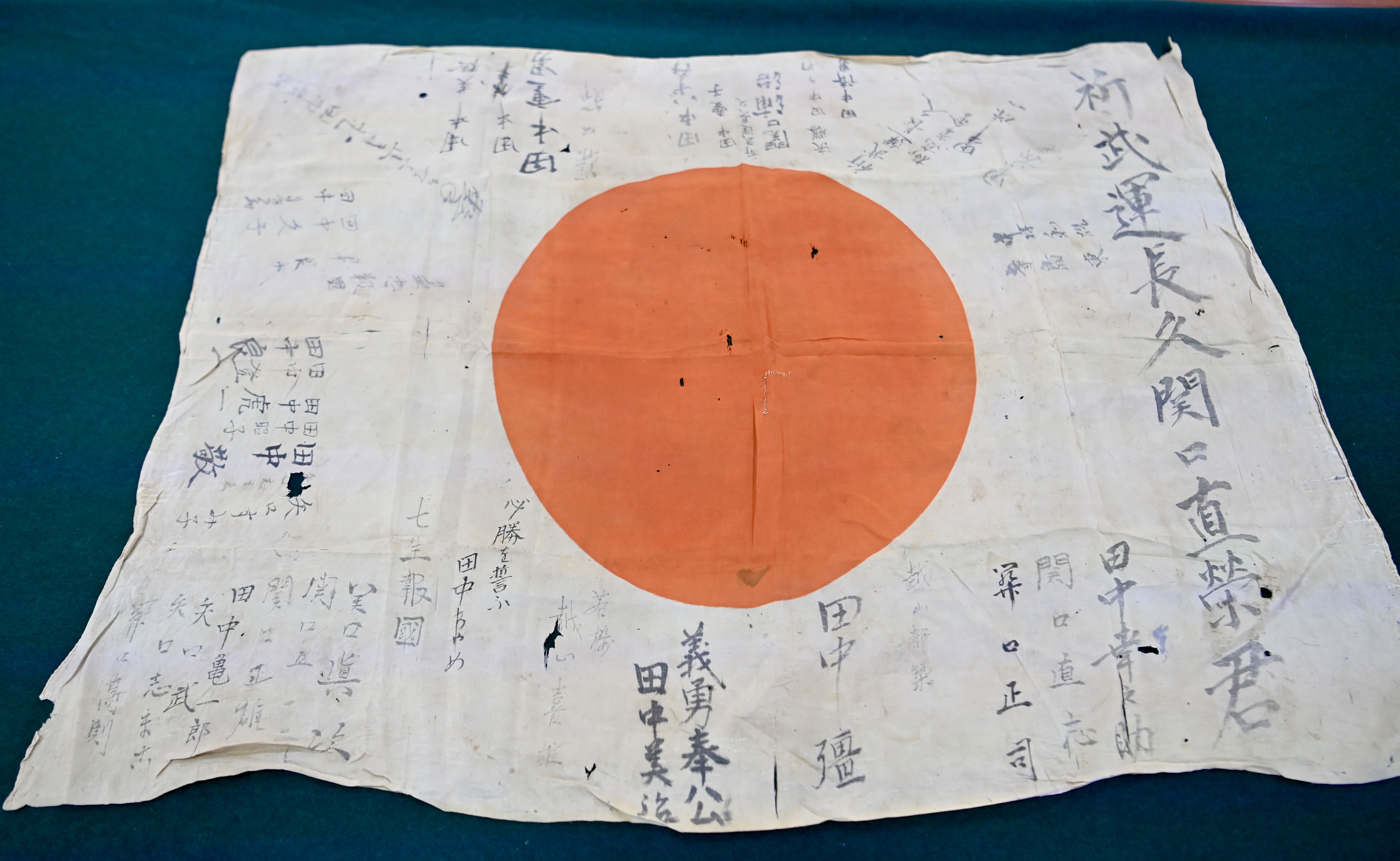▲8月20日,苏丽亚女士、贺中庭先生向重庆中国三峡博物馆捐赠文物仪式举行。图为展示捐赠的文物《百团大战中缴获日军的武运旗》。记者 齐岚森 摄