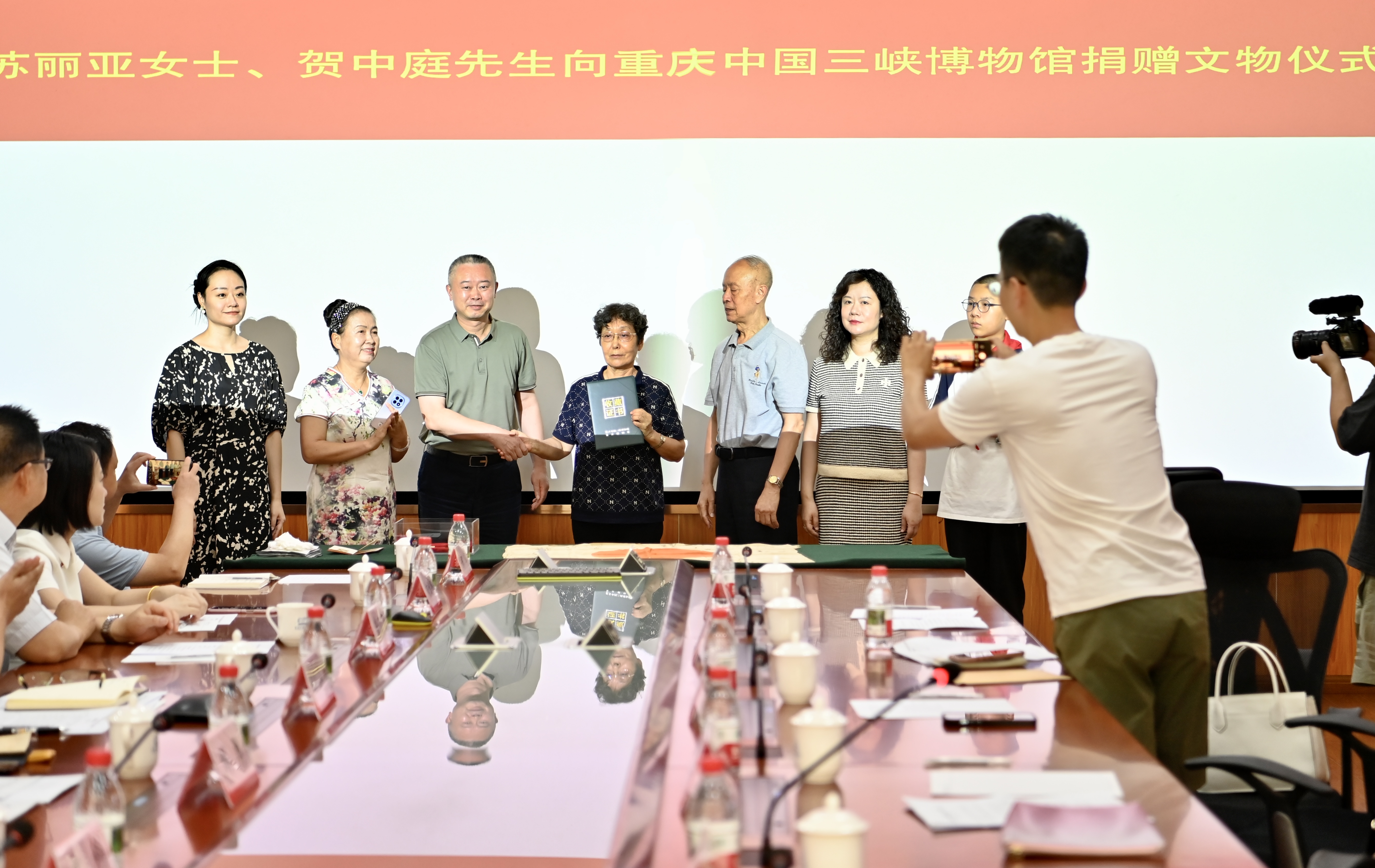 ▲8月20日,重庆中国三峡博物馆,苏丽亚女士、贺中庭先生向重庆中国三峡博物馆捐赠文物仪式举行。记者 齐岚森 摄
