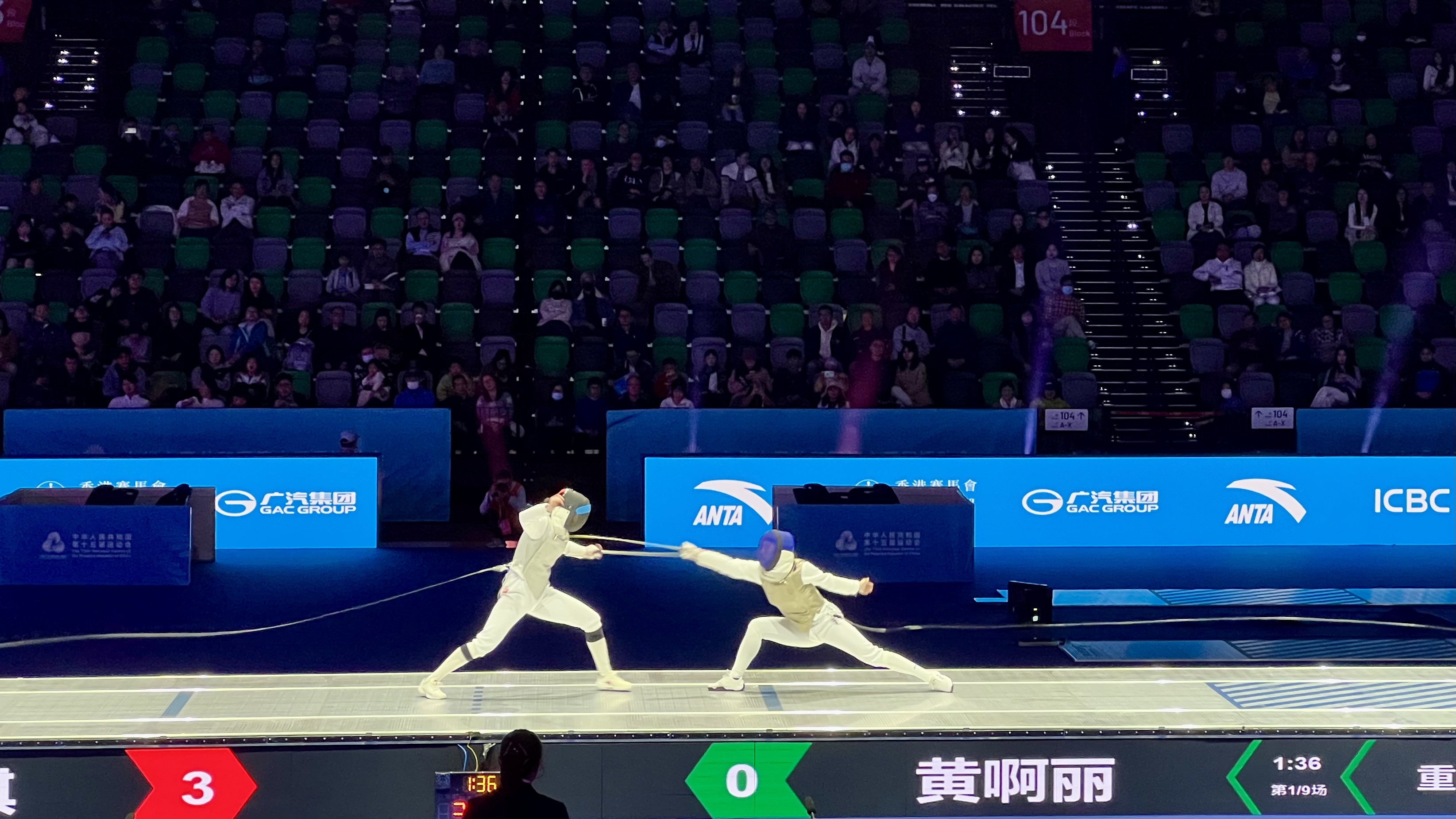 ▲11月20日晚,重庆市击剑队(右)斩获女子花剑团体银牌。市体育局供图