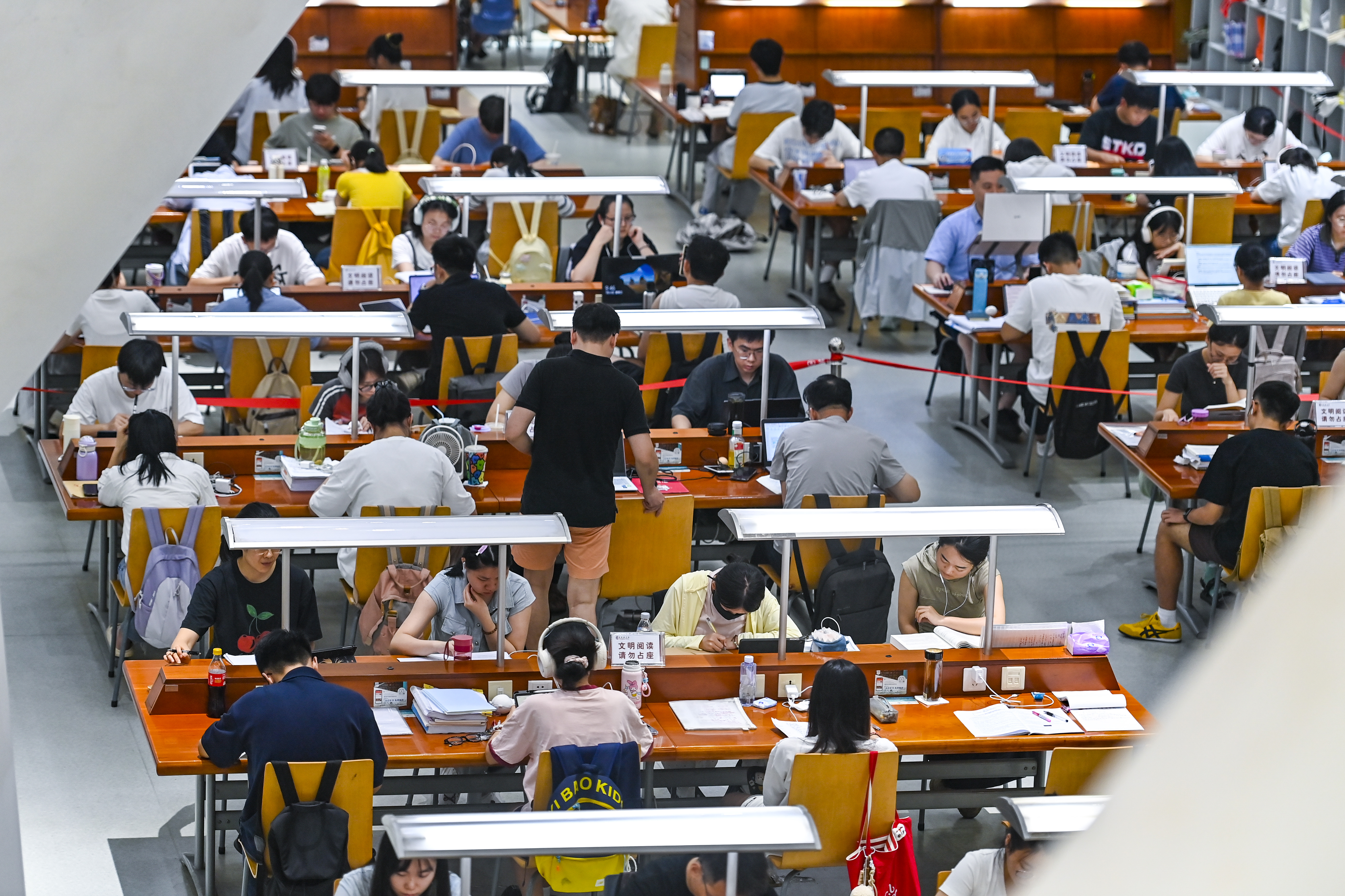 ▲重庆图书馆内读者众多。 记者 齐岚森 摄