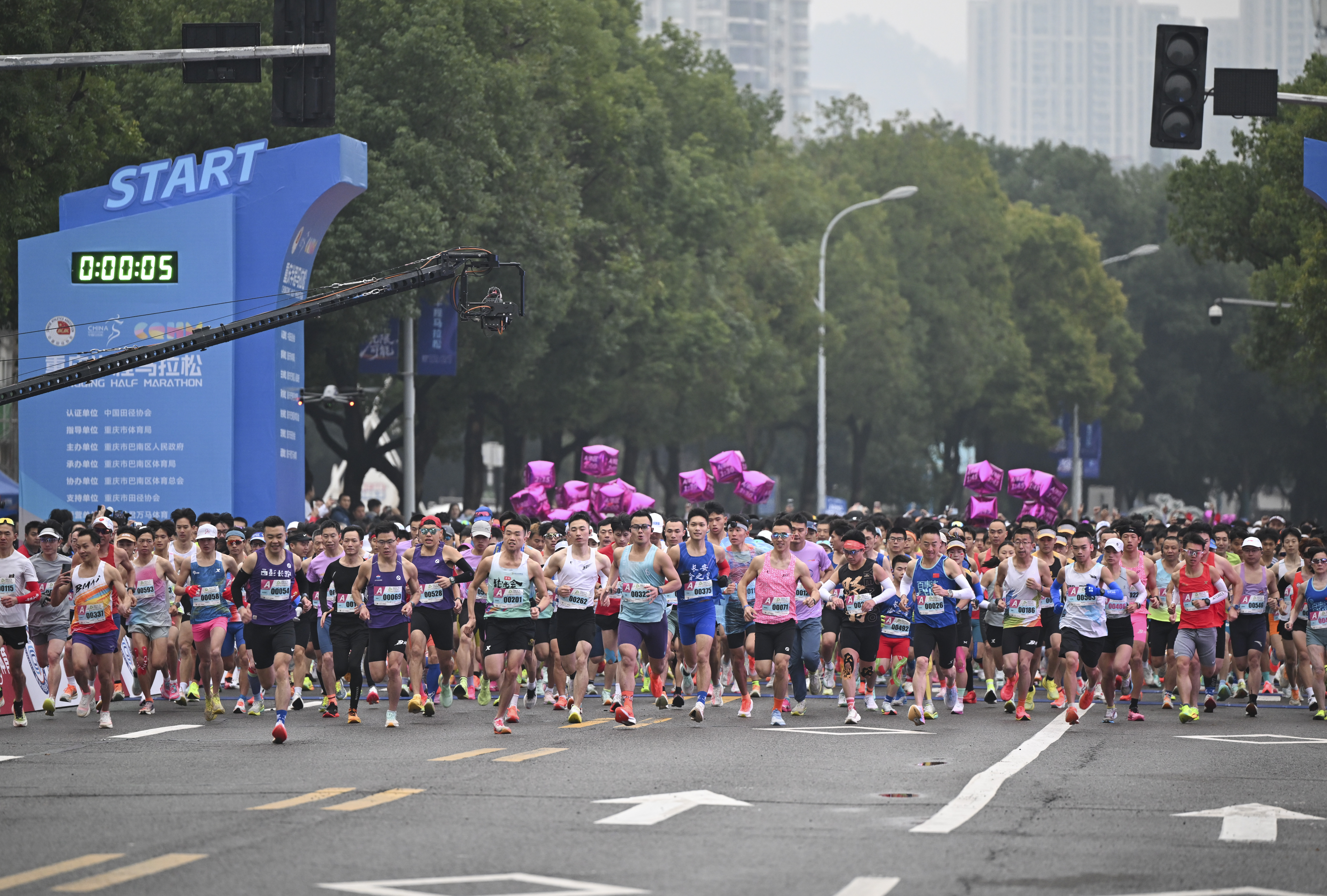 ▲2025年12月21日,巴南区巴滨路,2025重庆半程马拉松鸣枪开跑。记者 谢智强 摄