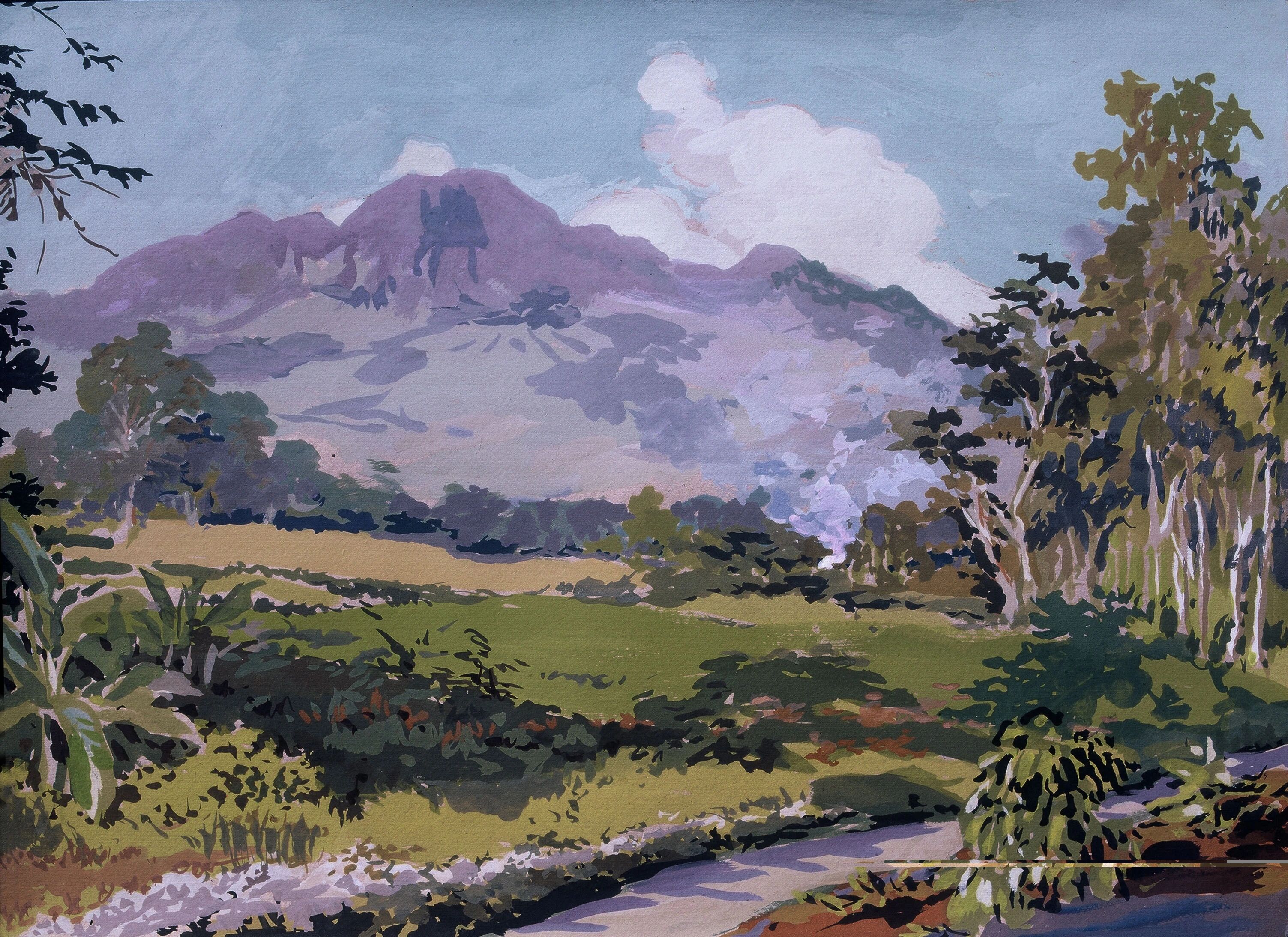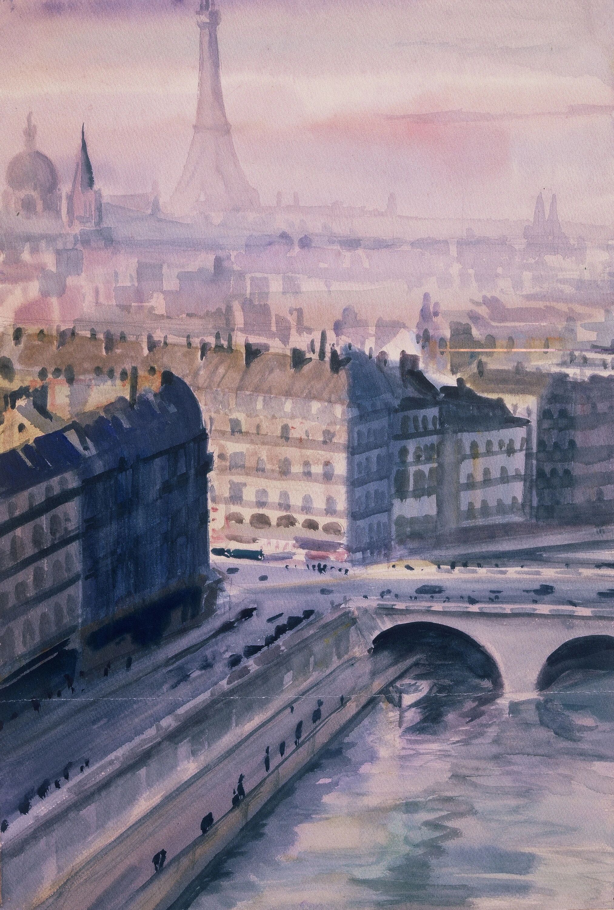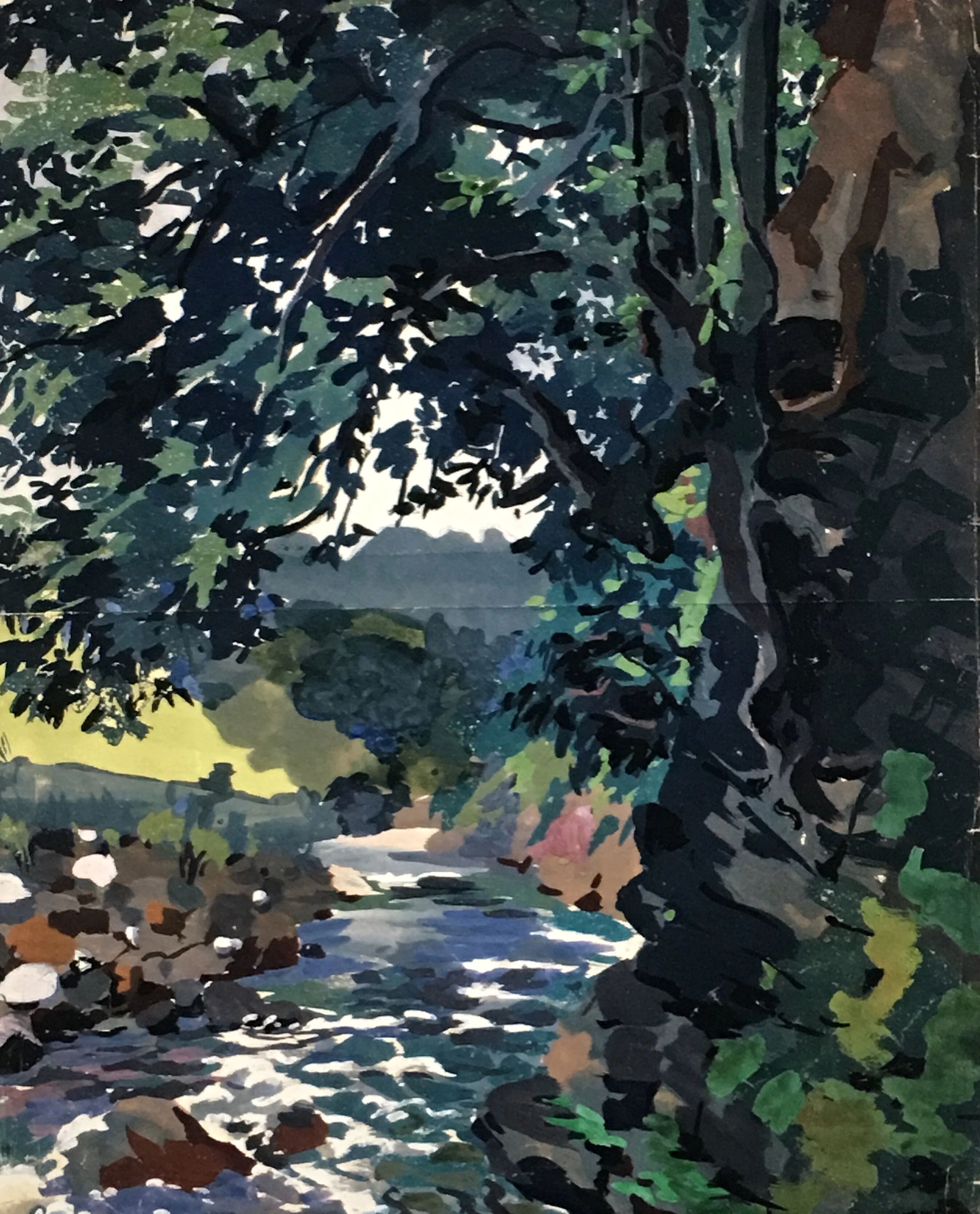 李有行曾受聘于巴黎知名的维纳丝绸设计公司,归国后以新颖的设计拯救了濒临倒闭的上海美亚丝绸厂,被誉为“印染艺术新派的‘摩登之魁’”。他的设计不仅具有前瞻性,更能成功服务于产业与市场。他还精通水粉写生,以花卉、风景主题居多,色彩明快、笔触灵动,将西方印象派的光色变幻与中国传统绘画的写意精神完美融合。他的色彩画笔触果断而富有韵律,既能精准捕捉瞬间的光影变化,又饱含东方艺术特有的诗意与抒情。