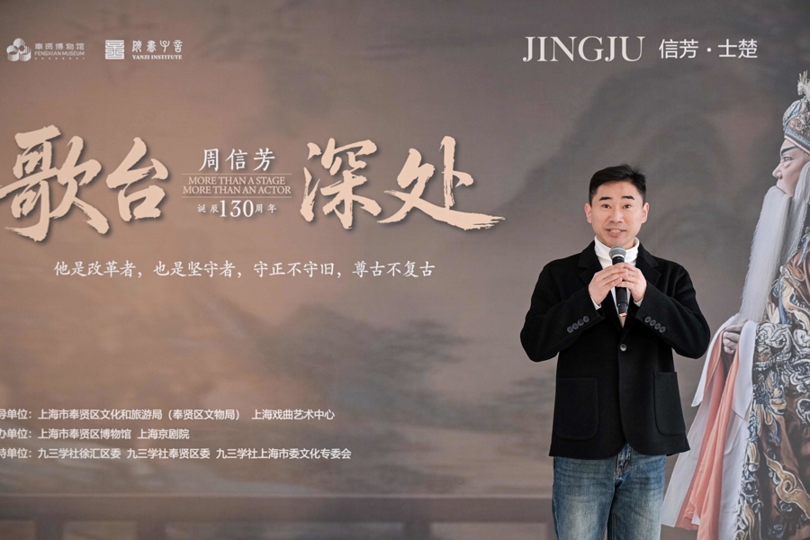 奉贤区委常委、统战部部长李锐表示,奉贤区以“新江南文化”“贤美文化”为基,紧扣“文化赋能城市软实力”主线,深化“美育工程”推动传统文化创新。本次展览致敬京剧宗师周信芳,既是文化赋能的实践,更助力经典艺术焕新,为文化强国聚力。