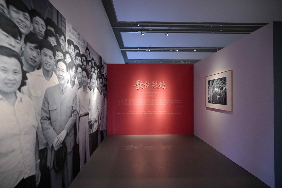 上海京剧院与上海视觉艺术学院师生团队通力合作完成《歌台深处》策展设计,将传统戏曲元素与现代设计语言相结合。视觉艺术学院人工智能应用工作室运用AIGC技术手段,使老照片焕发新生,为展览注入时代气息。展览互动区域也力求生动体验,观众可以通过扫码拍摄获得一张与周大师跨越时空的“合影”。
