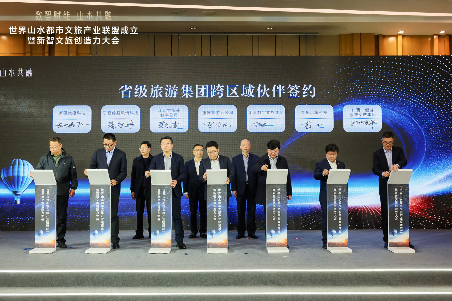 两江之畔,智慧激荡,未来已来!12月23日下午,由重庆市文化和旅游发展委员会指导,重庆文化旅游集团、重庆市文化旅游协会主办的“数智赋能·山水共融——世界山水都市文旅产业联盟成立暨新智文旅创造力大会”在重庆两江假日酒店举行。会上,成立联盟、发布系列计划、签署一揽子协议……一系列务实举措,绘就世界山水都市文旅发展的新蓝图,着力塑造重庆都市旅游的新传奇。