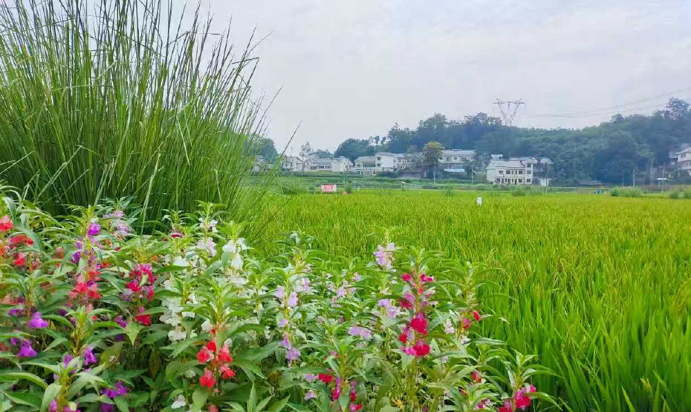 ▲在田埂上种植凤仙花、菖蒲等植物,为天敌昆虫提供栖息地和营养来源。受访者供图