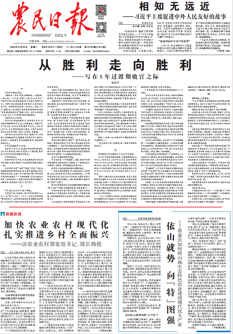 启示:把农业建成现代化大产业,关乎农业,也关乎乡村。重庆的实践表明,产业发展起来了,可以吸引各类要素向乡村汇聚,形成良性的“飞轮效应”,为乡村全面振兴注入内生动力;而把乡村建成优质生活空间,返乡入乡人才才能干得好、留得住。只有将农业与农村、产业与村庄、农民与乡村作为整体谋划推进,才能最终实现农业强、农村美、农民富的愿景目标。