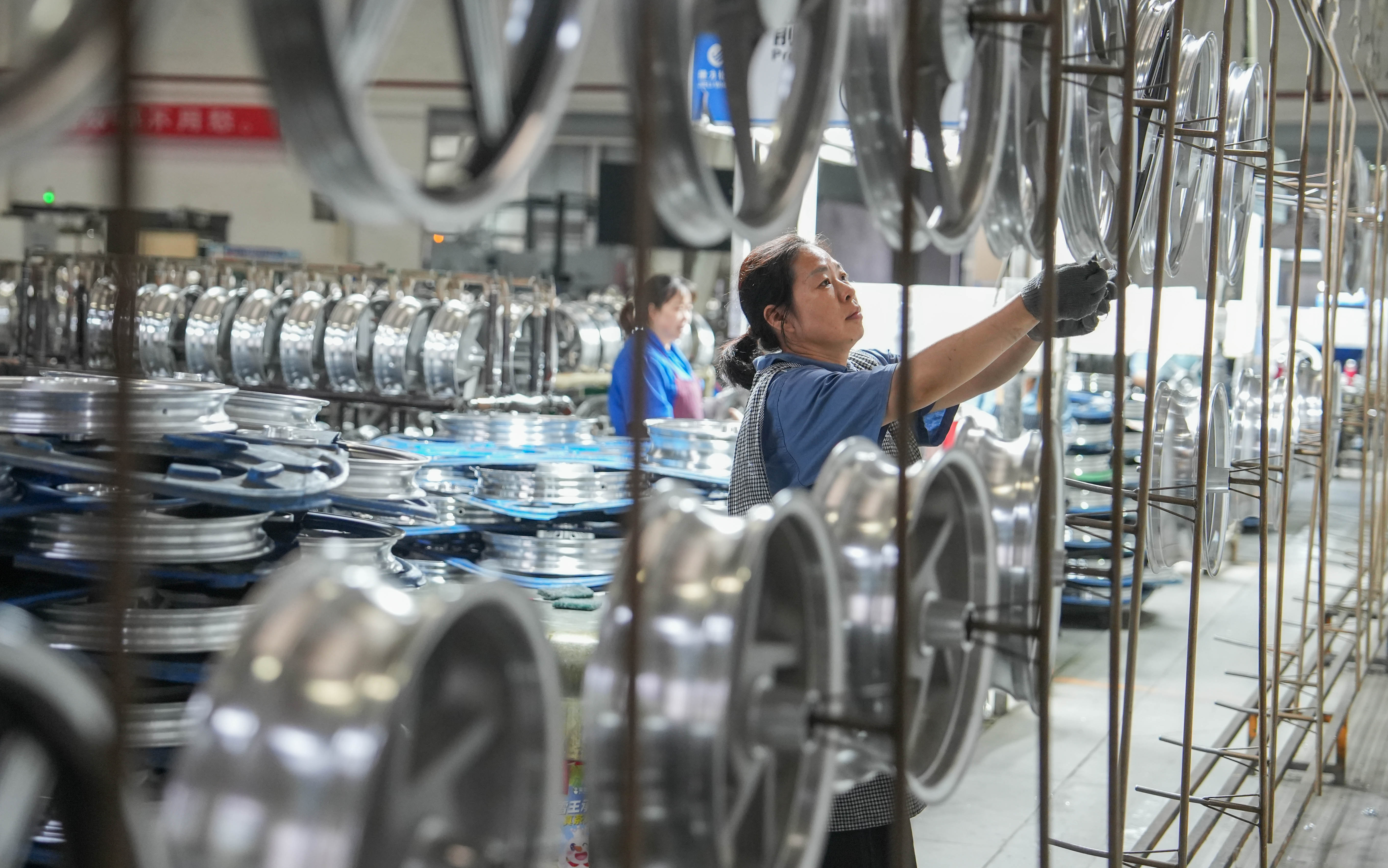 ▲10月13日,垫江县重庆捷力轮毂制造有限公司,工人正在赶制汽车轮毂。特约摄影 龚长浩