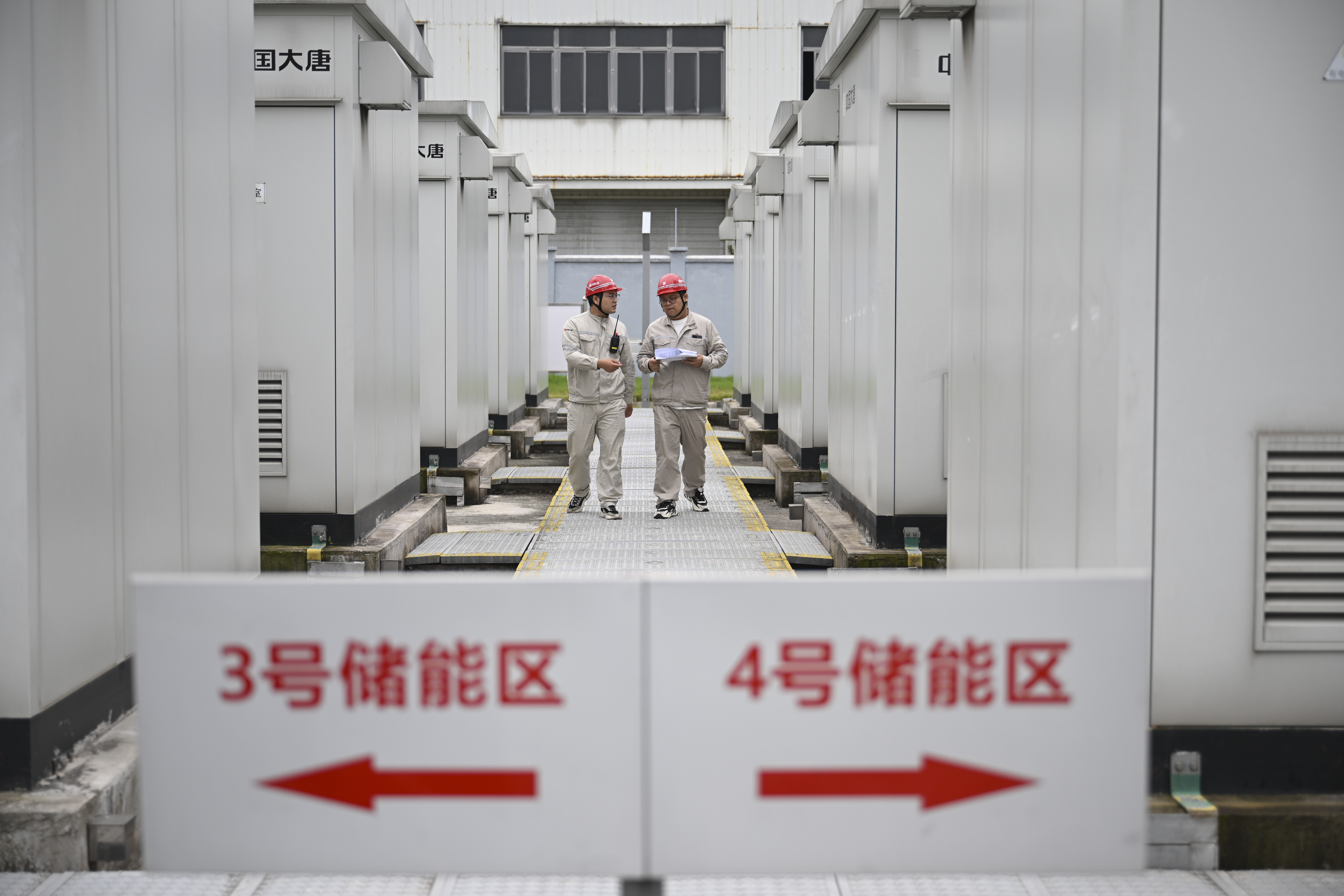 ▲10月14日,铜梁区淮远储能电站,工作人员正在巡护。记者 谢智强 摄