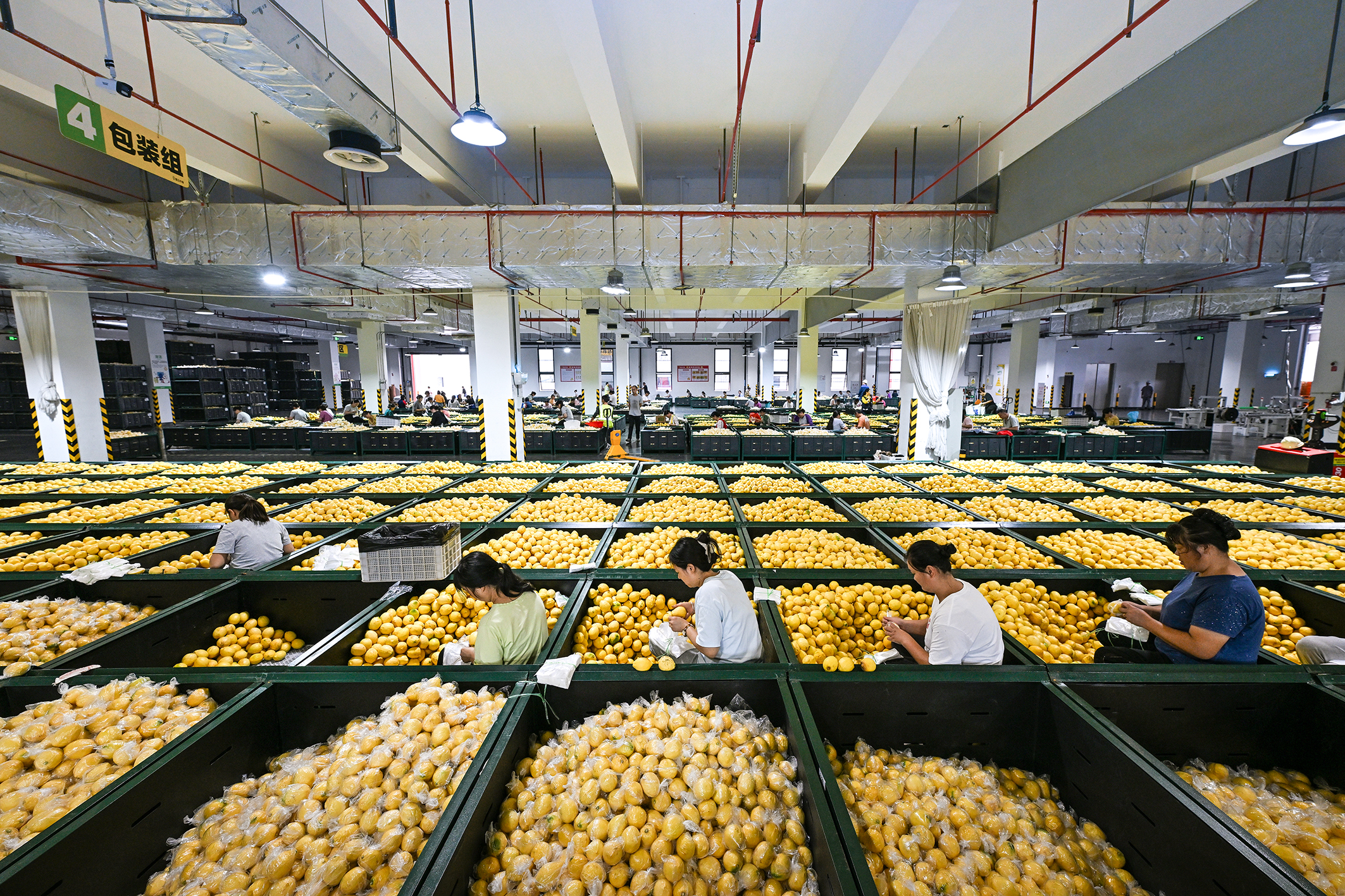 ▲10月14日,潼南区雪王农业有限公司车间内,工人在包装柠檬鲜果。记者 张春晓 摄