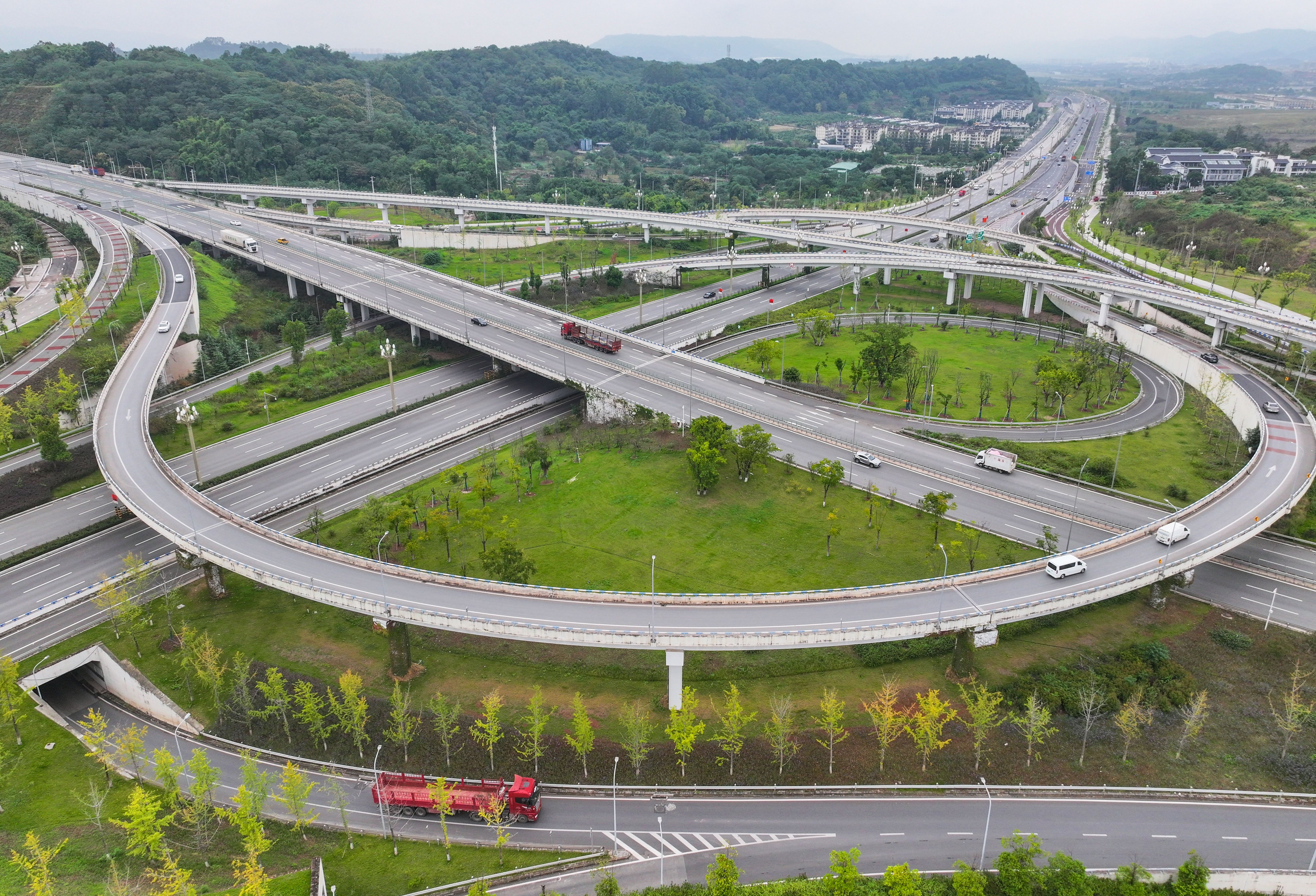 ▲10月15日,重庆高新区,车辆行驶在科学大道农马立交上(无人机照片)。首席记者 龙帆 摄
