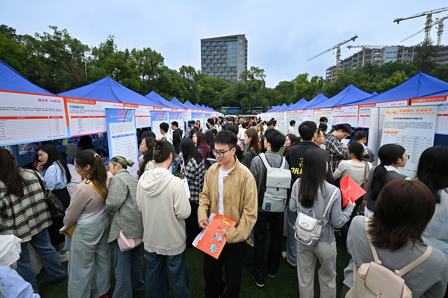 ▲10月16日,在西南大学举行的2025年全国城市联合招聘长江经济带青年人才交流会暨民营企业引才服务月上,现场求职的学生。记者 张春晓 摄