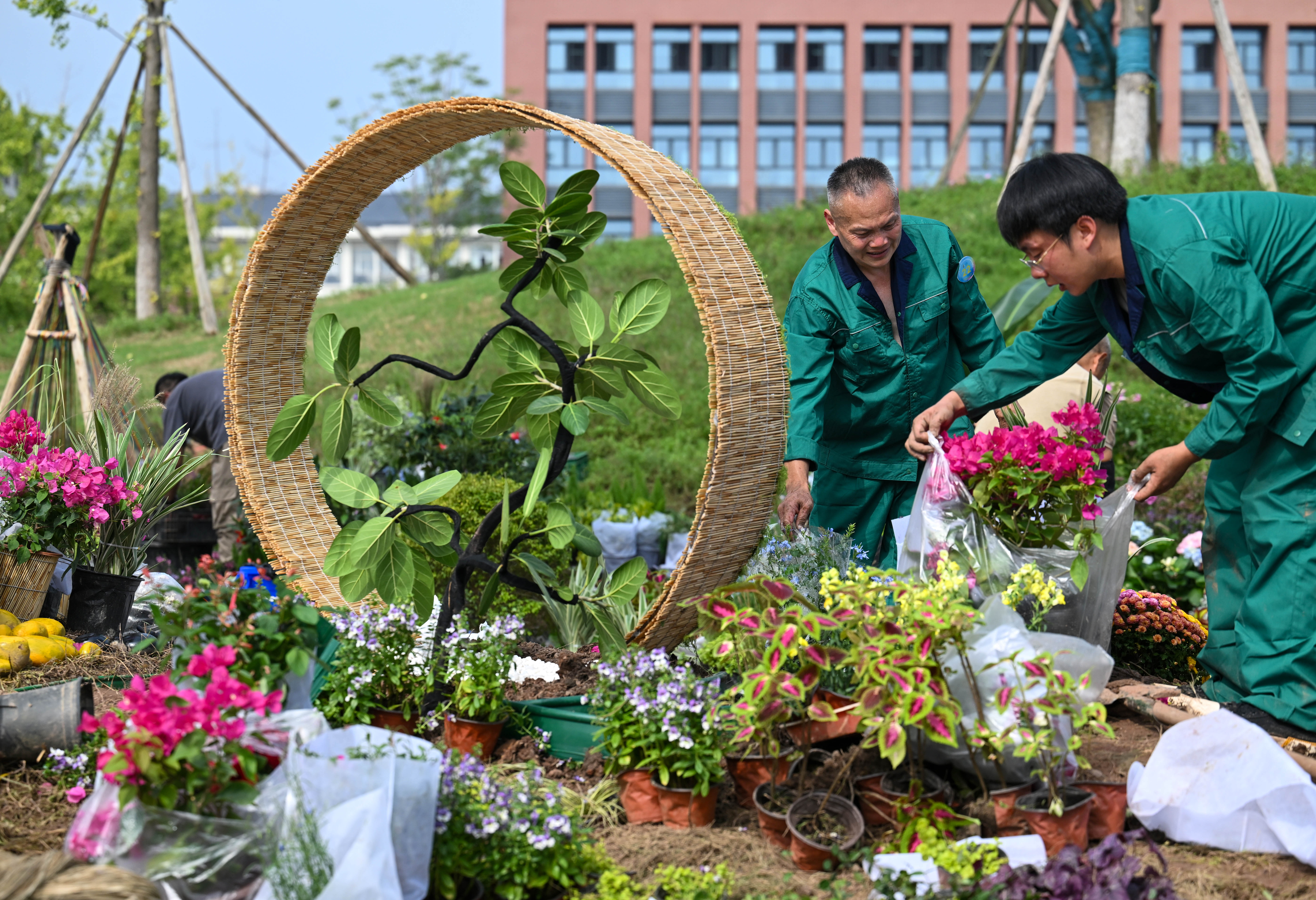 ▲10月16日,重庆市城市建设高级技工学校,选手在花艺环境设计师竞赛项目区布置花艺。记者 张锦辉 摄
