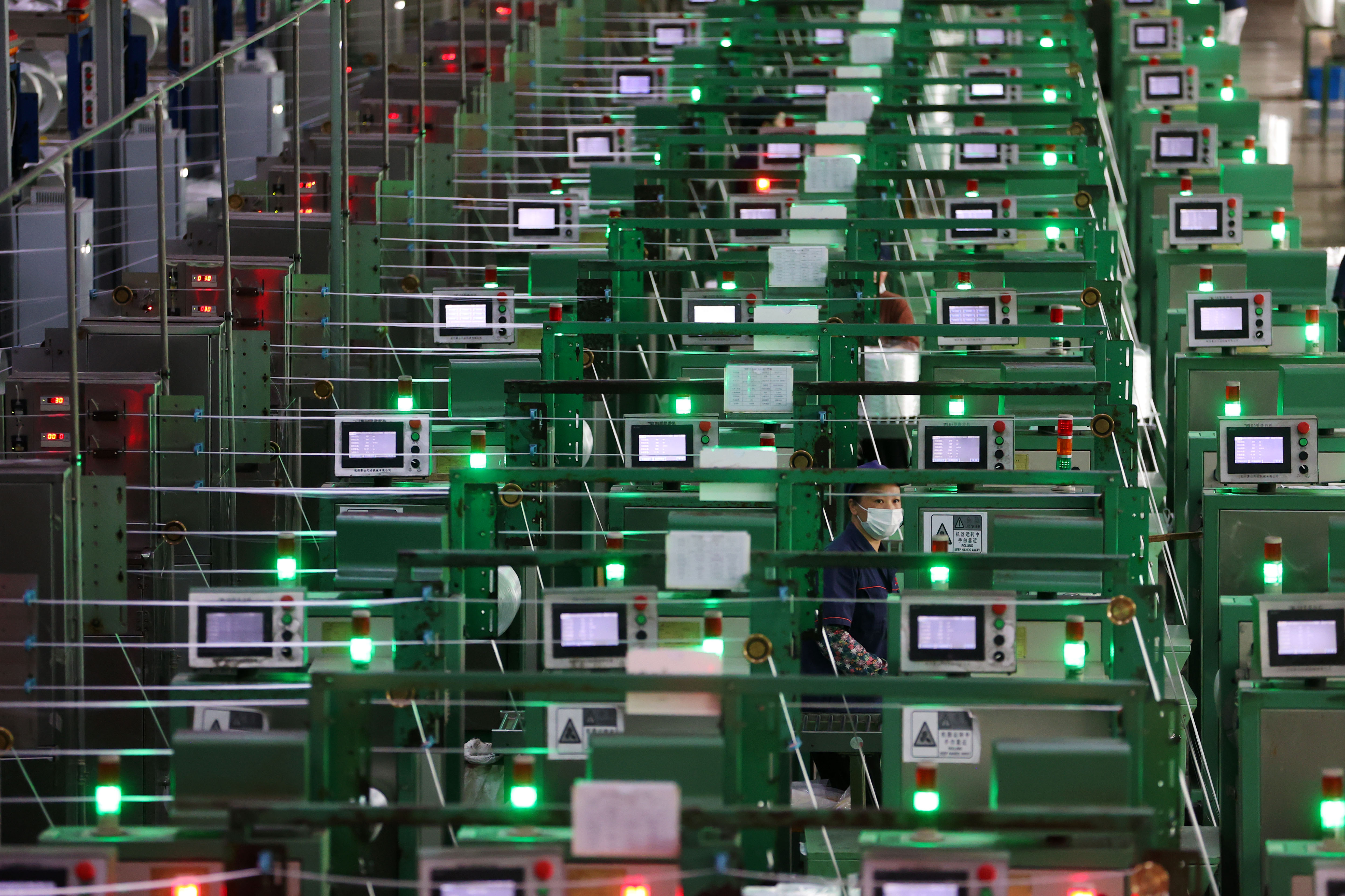 ▲10月16日,黔江区高新区一玻纤生产企业生产车间,工人正在玻纤智能化生产流水线上劳作。特约摄影 杨敏