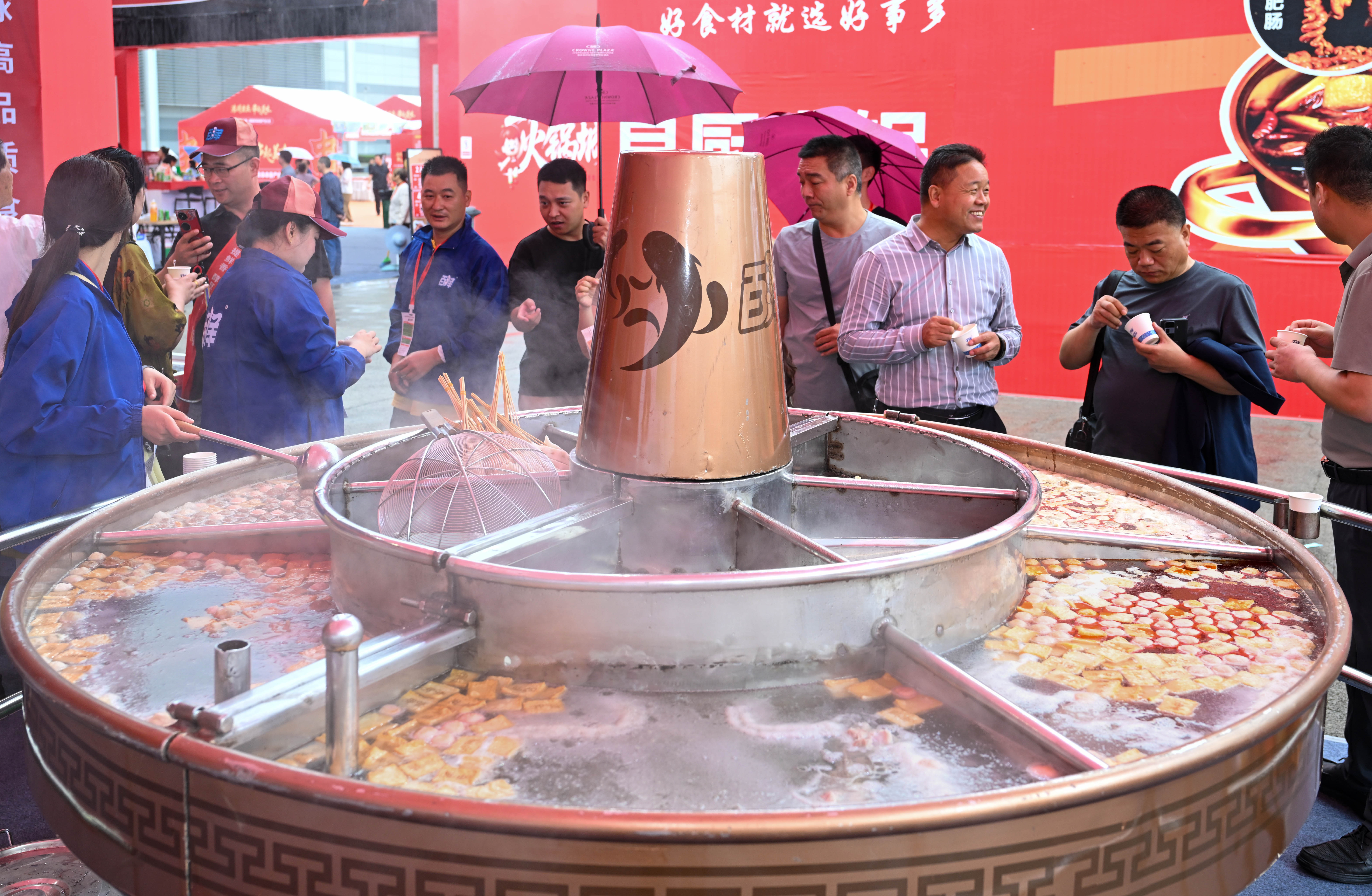 ▲10月17日,重庆国际博览中心,客商们在品尝火锅食材。记者 张锦辉 摄