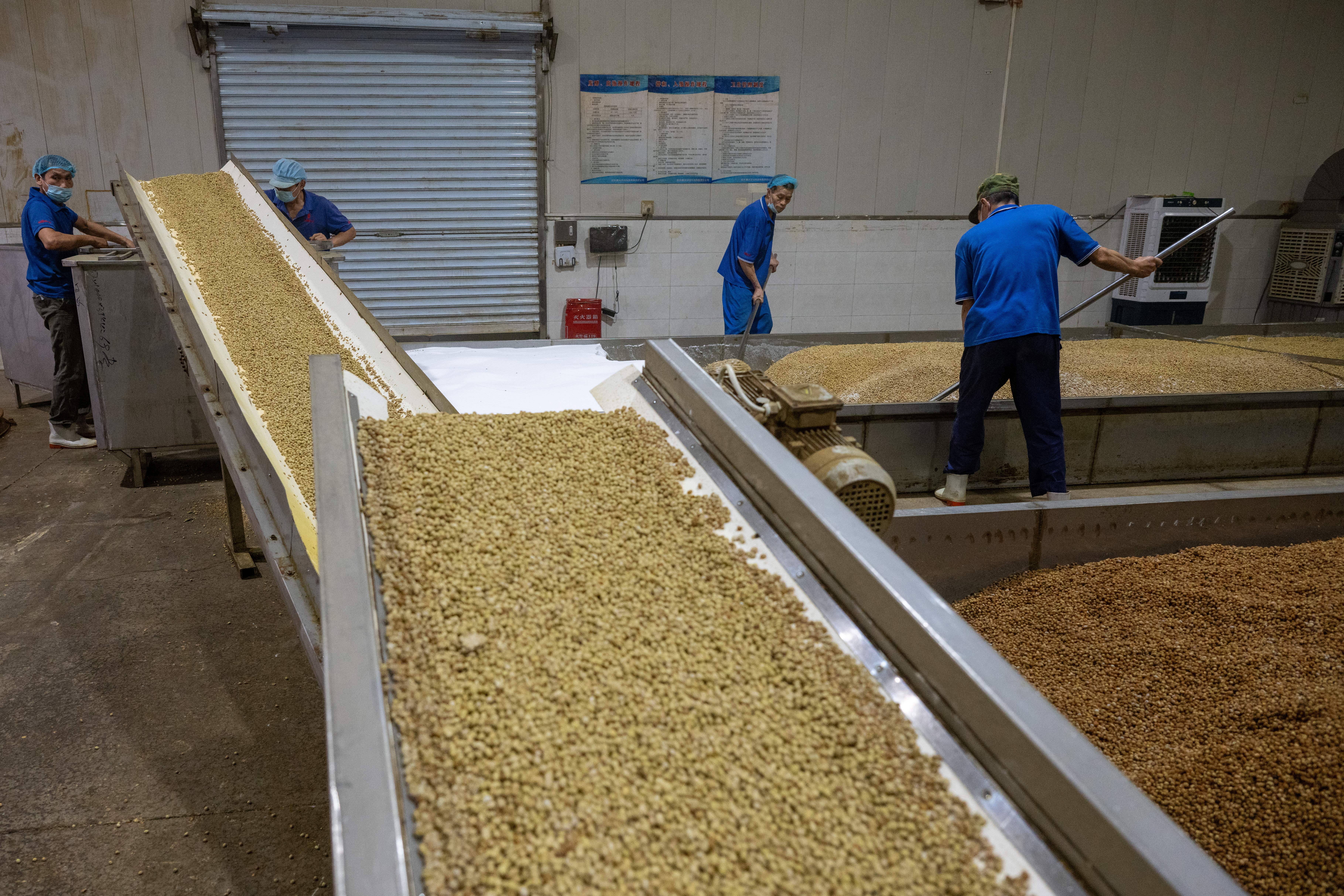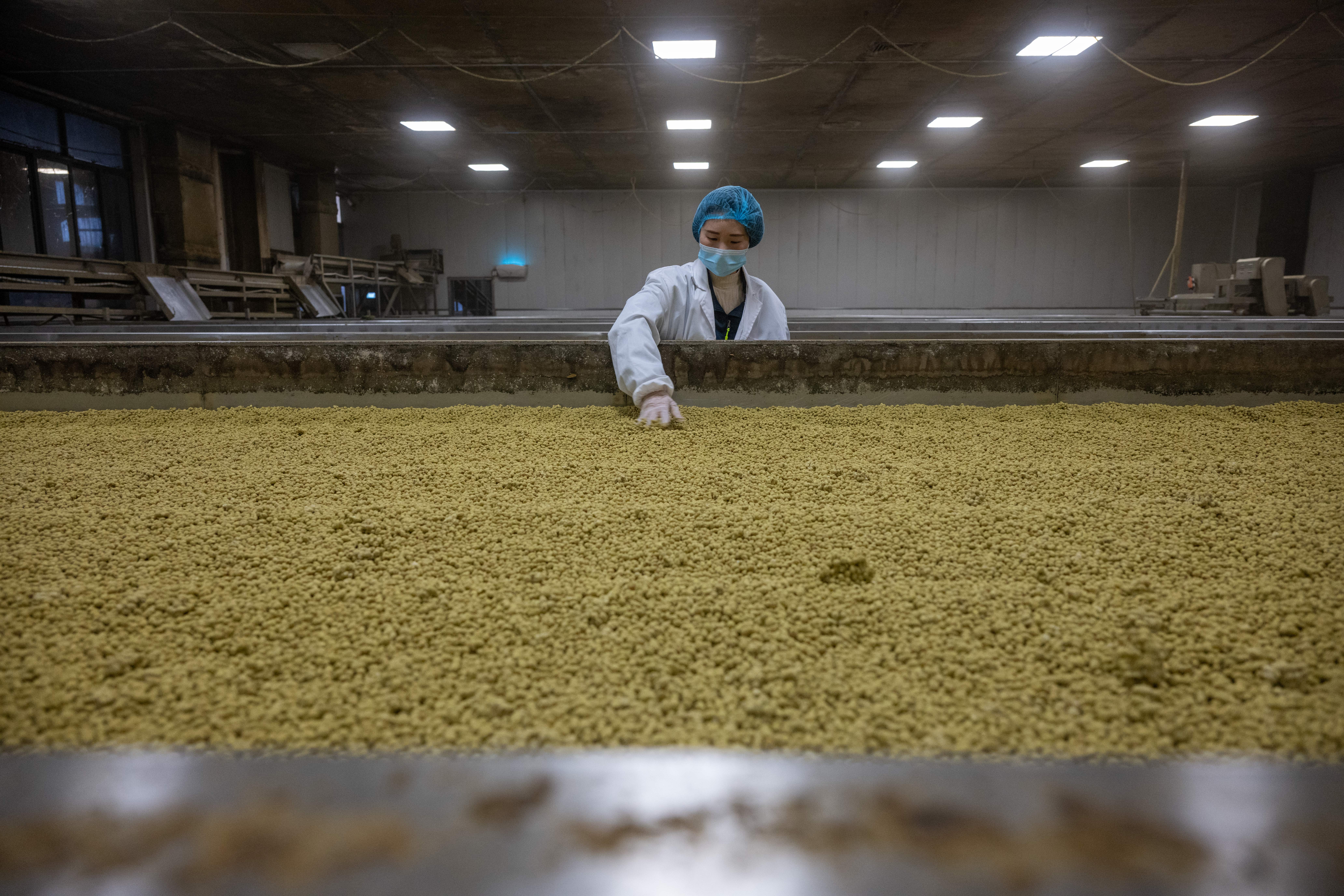 ▲10月30日,永川国家高新区三教产业园菽乡(重庆)农业科技有限责任公司,工人在进行检查原材料。记者 崔力 摄