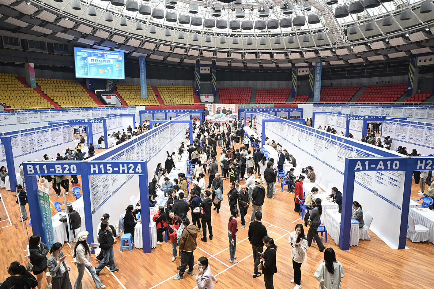 ▲2025年10月31日,万州三峡之星体育馆,“筑梦大三峡·就在渝东北”暨“对口援库区·携手促就业”大型人才招聘会现场。记者 谢智强 摄