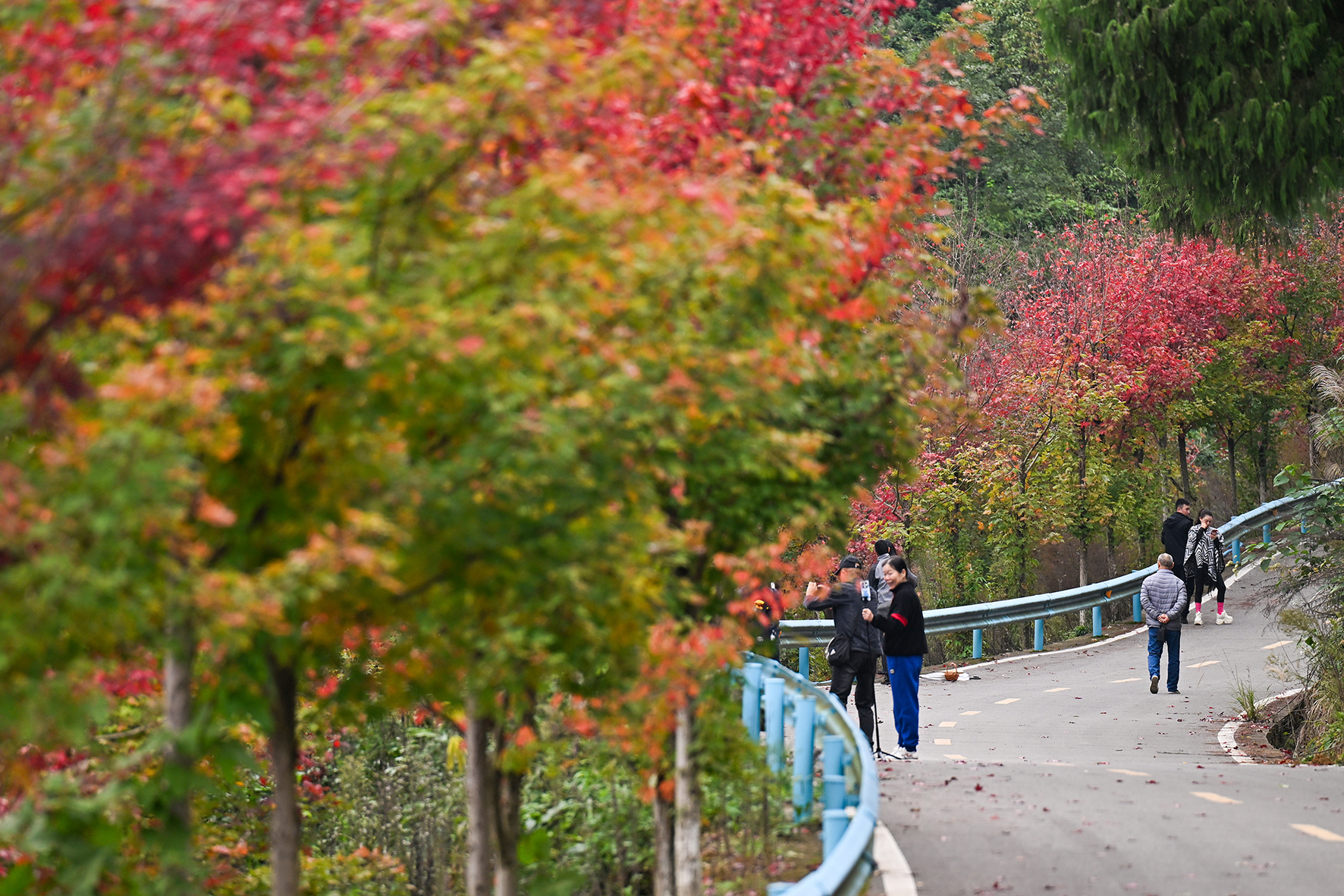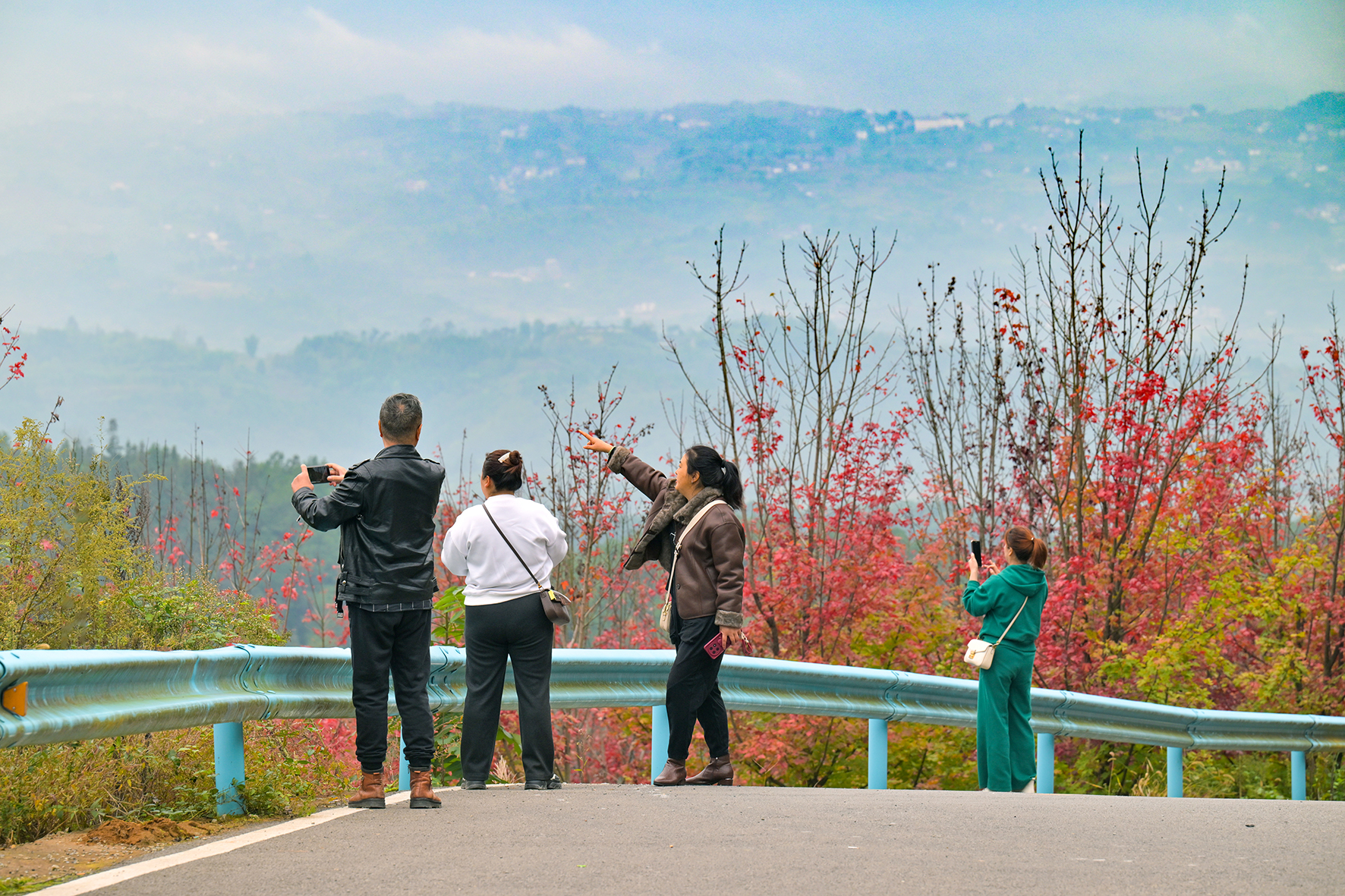 ▲2025年10月31日,市民们在渝北云龟山欣赏红叶。记者 张春晓 摄