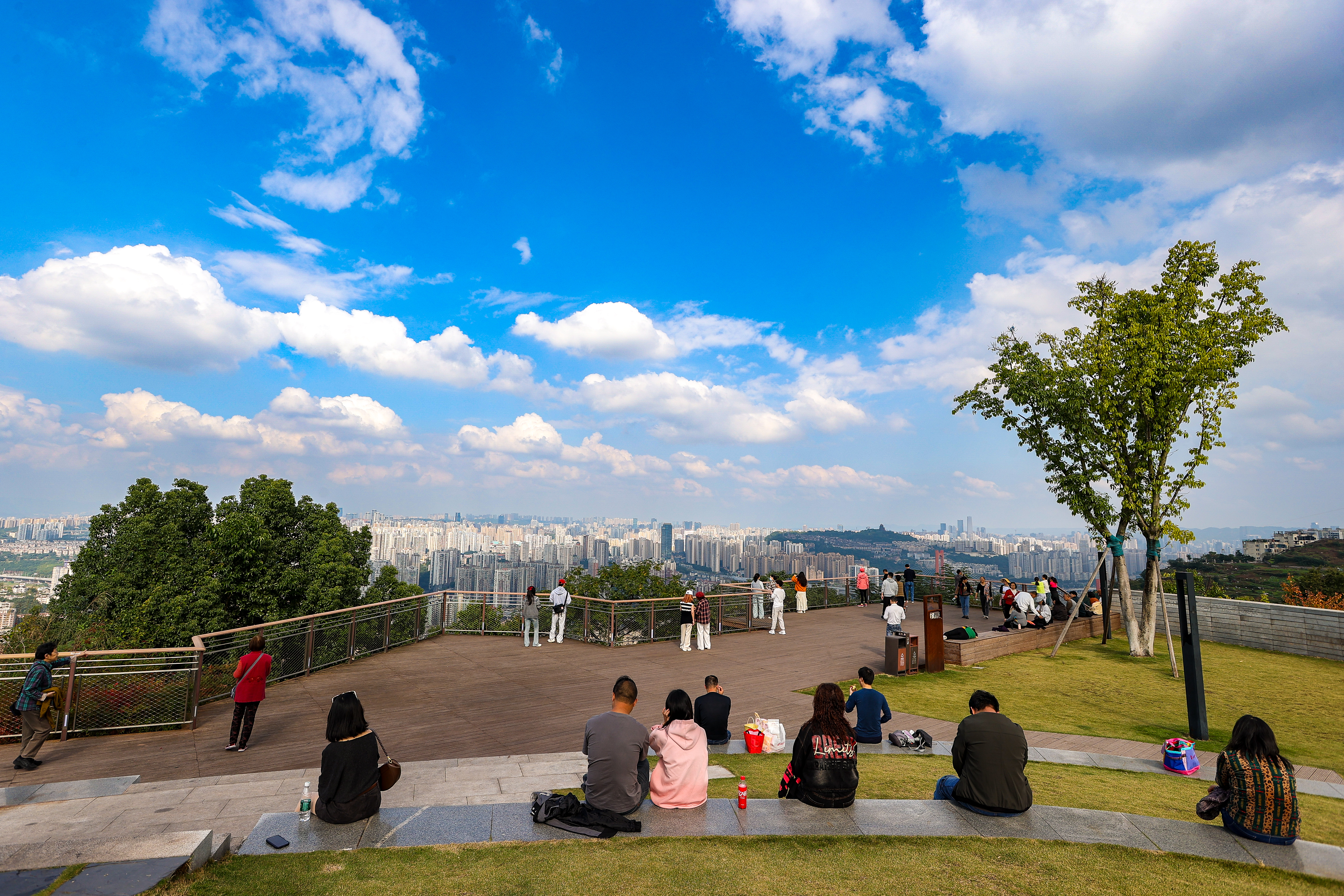 ▲11月4日,沙坪坝区平顶山公园半山崖线,不少市民在观景台游玩。记者 尹诗语 摄