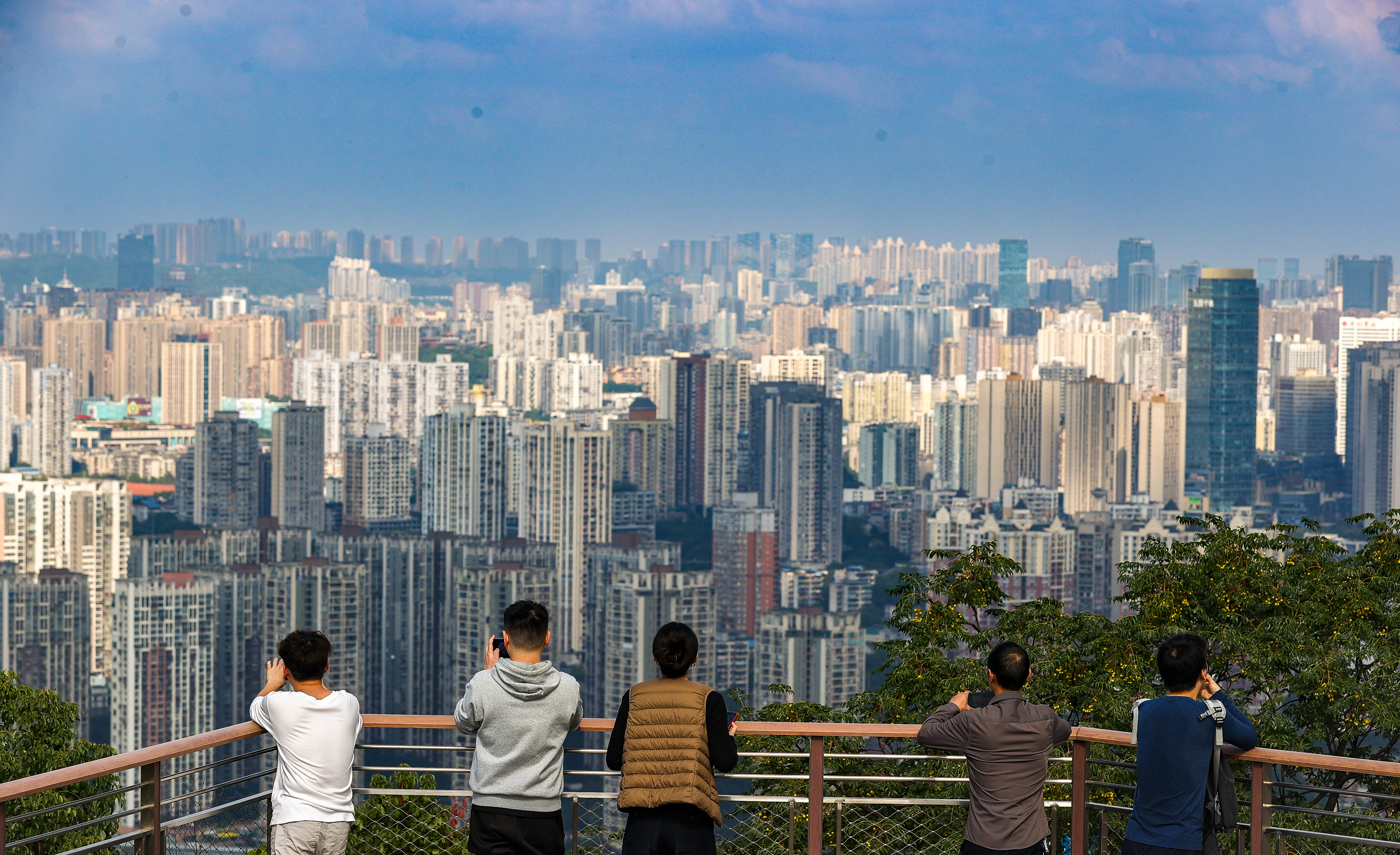 ▲11月4日,沙坪坝区平顶山公园半山崖线,不少市民在观景台观赏城市风光。记者 尹诗语 摄