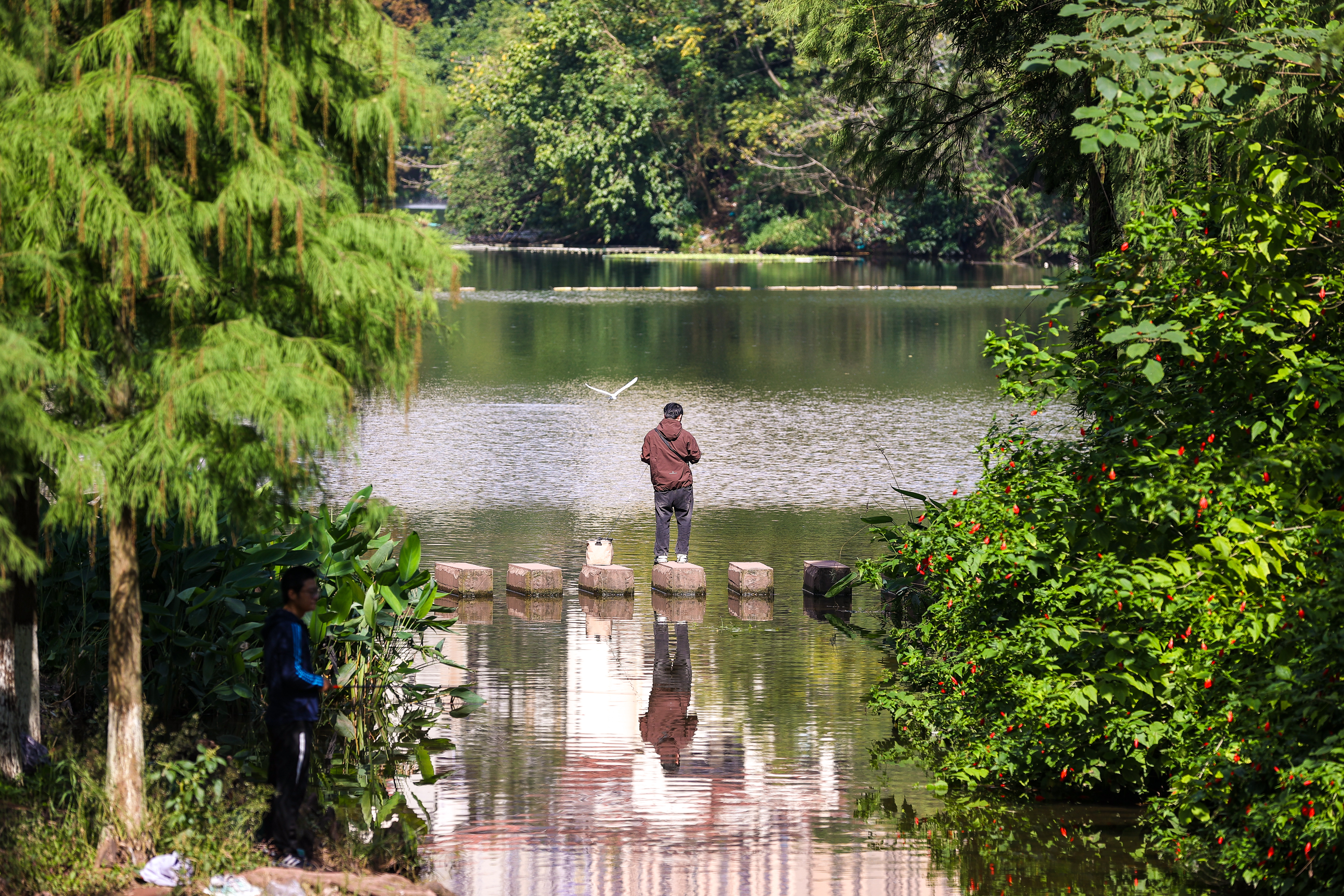 ▲11月4日,九龙坡区彩云湖国家湿地公园,一位市民在湖边垂钓。记者 尹诗语 摄
