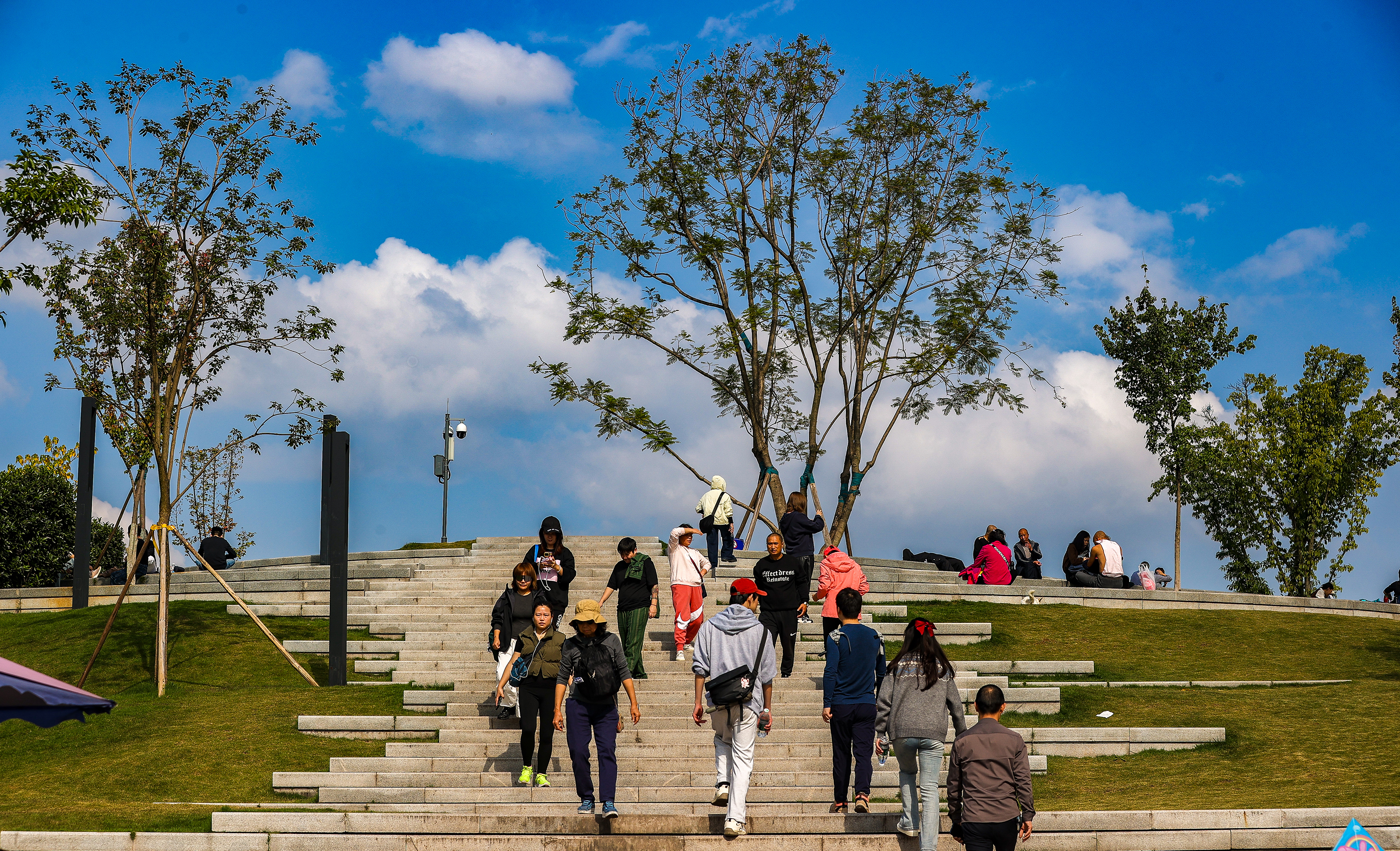 深秋时节,山城重庆迎来晴好天气。彩云湖湿地公园内,市民或沿湖漫步、或静坐观景,湖面波光粼粼与金黄草木相映成趣;半山崖线上,不少人结伴徒步,在步道上赏景拍照,感受城市生态与人文交融的魅力。暖阳下,市民纷纷走出家门,在自然与城市风光中放松身心,尽享深秋好时光。