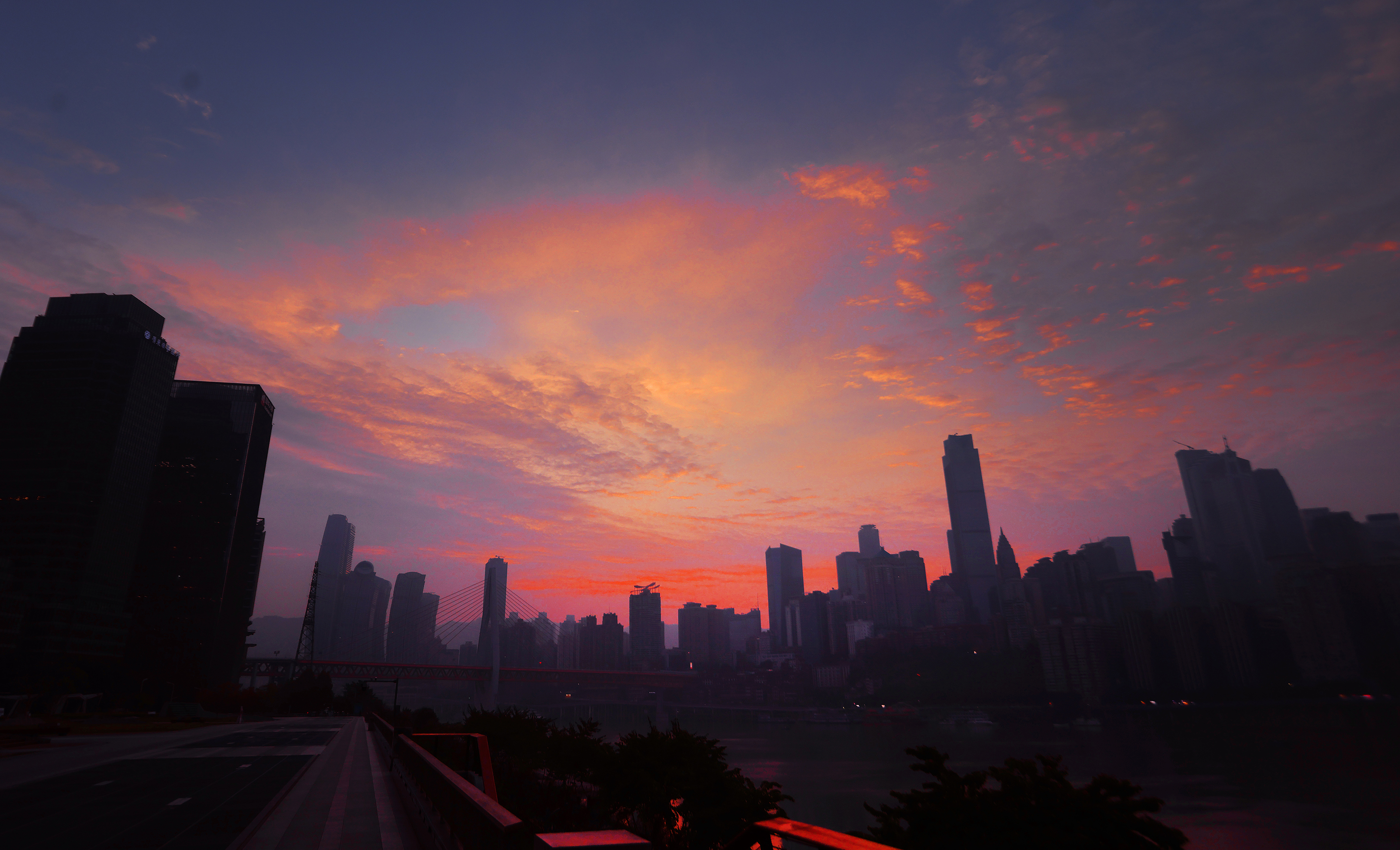 图片新闻|朝霞红满天 山城美如画