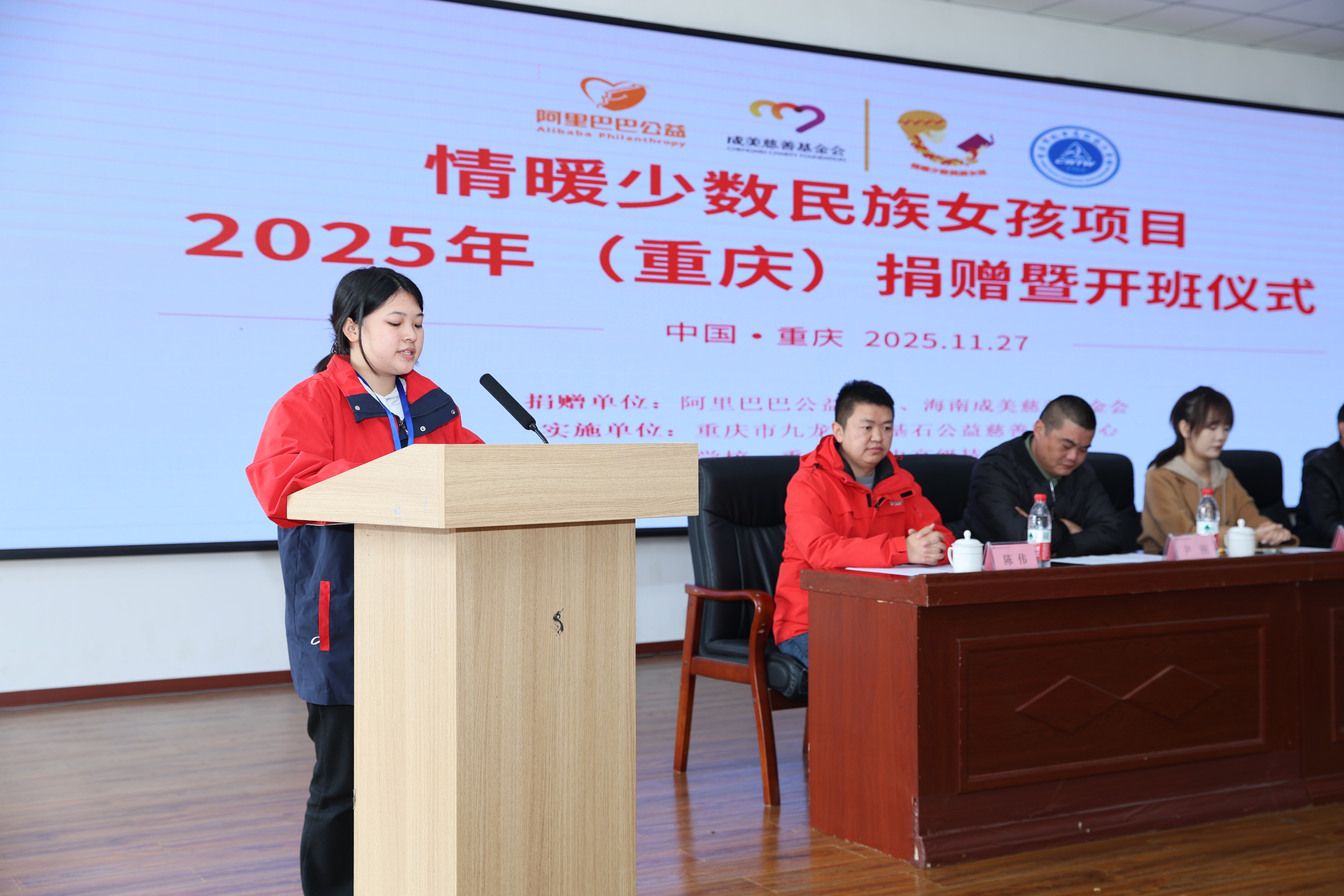 11月27日上午,由阿里巴巴公益平台、海南成美慈善基金会联合支持的“情暖少数民族女孩”项目2025年(重庆)捐赠暨开班仪式在重庆市机电高级技工学校(金竹校区)举行。该校2025级50名以少数民族为主、家庭经济困难女孩获得30万元助学资金。