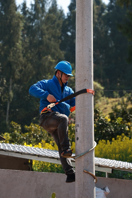 说干就干。大家肩挑背扛着皮线光纤和工具箱,沿着蜿蜒的山路向上攀爬。装维人员负责上杆作业,其余人则在下方配合放线。经过五个小时的连续奋战,移动宽带终于成功接入老人家中。